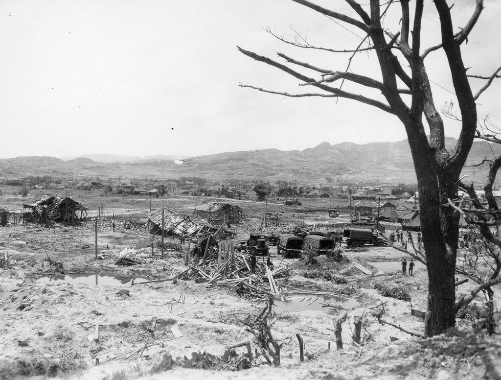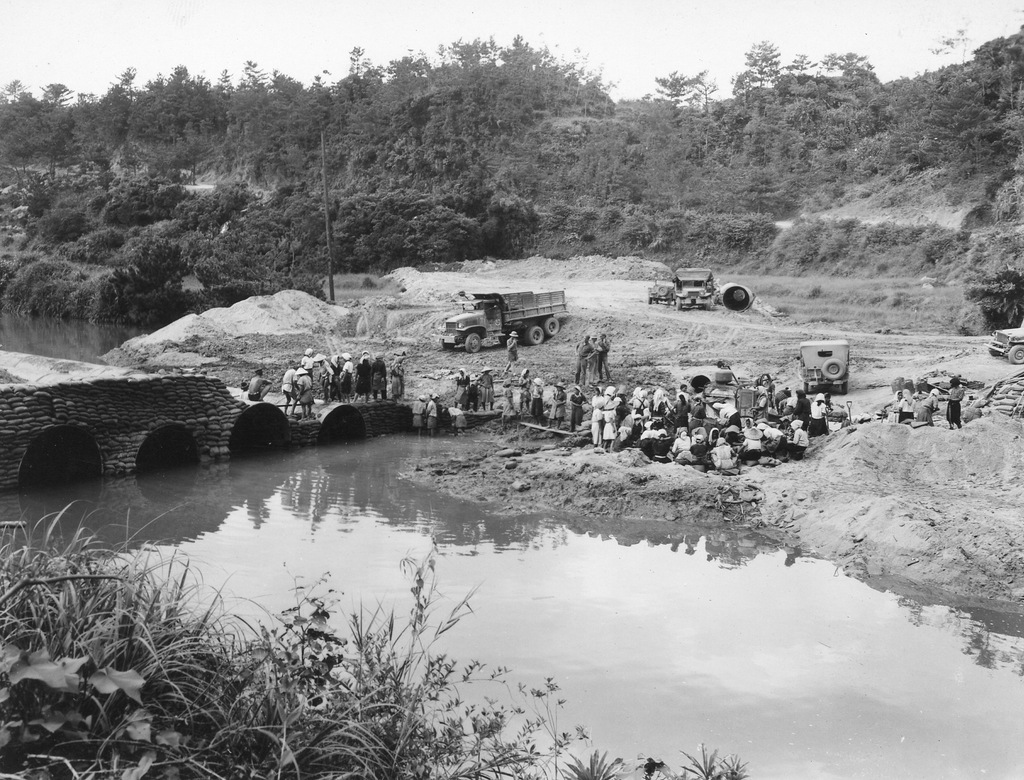 Photographs of some of the rebuilding efforts after the war, the Okinawan people trying to get on with their lives after the devastation and destruction of the war.