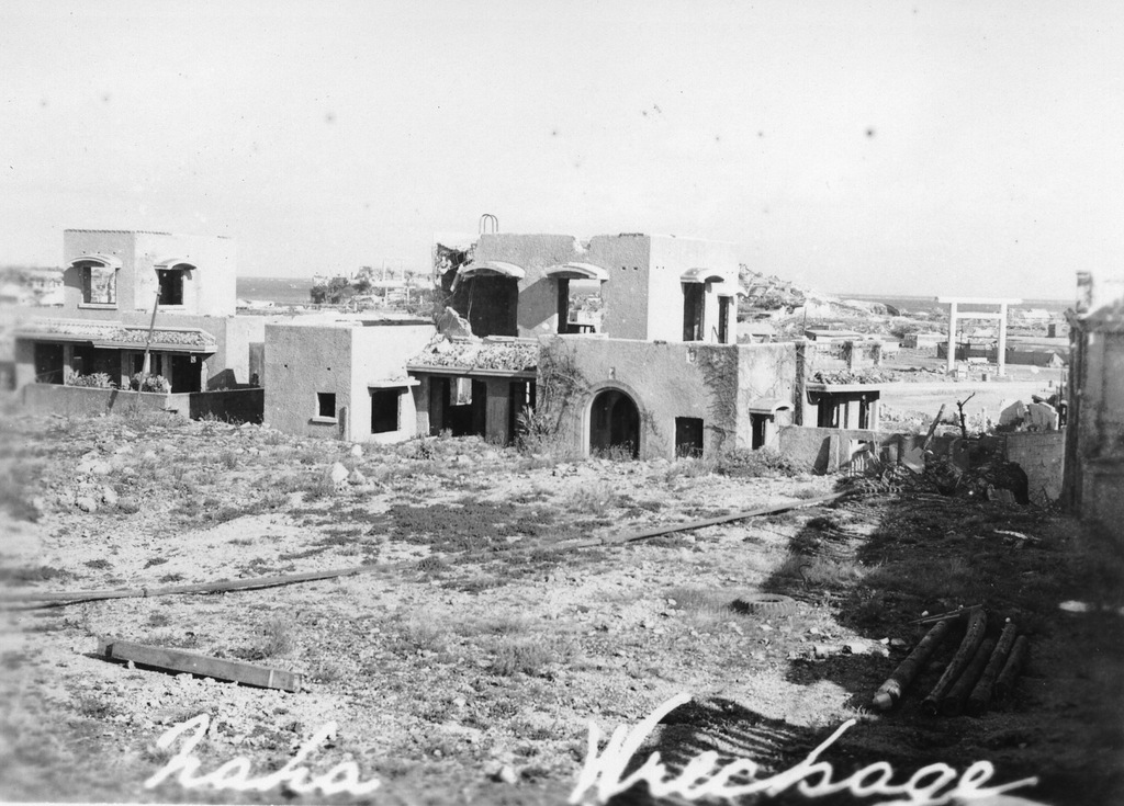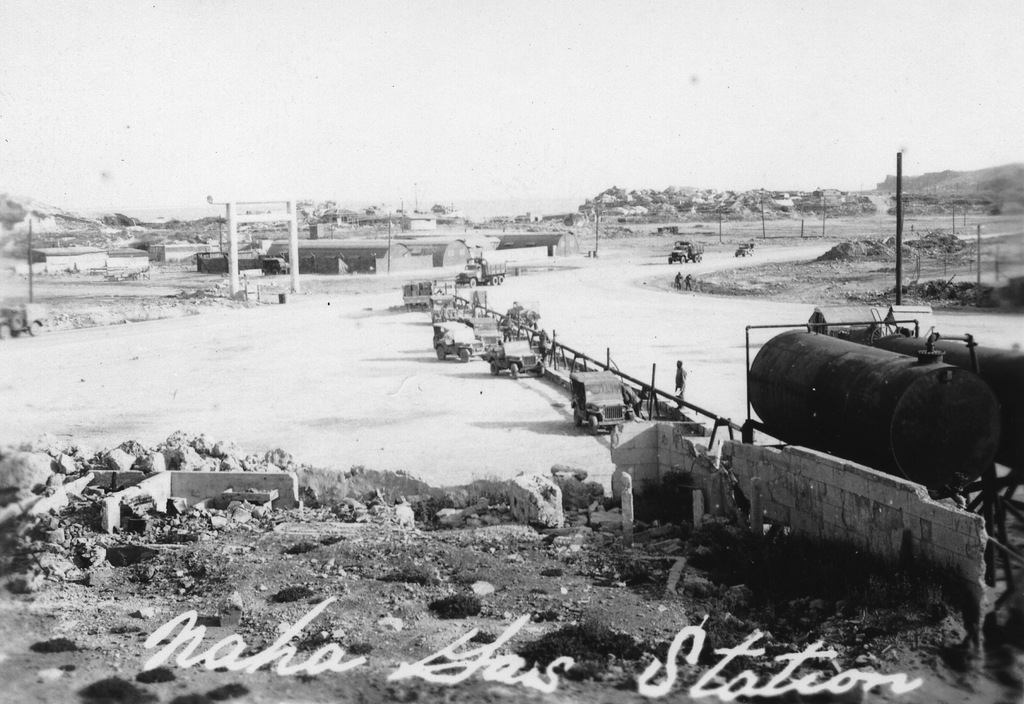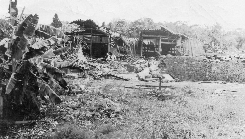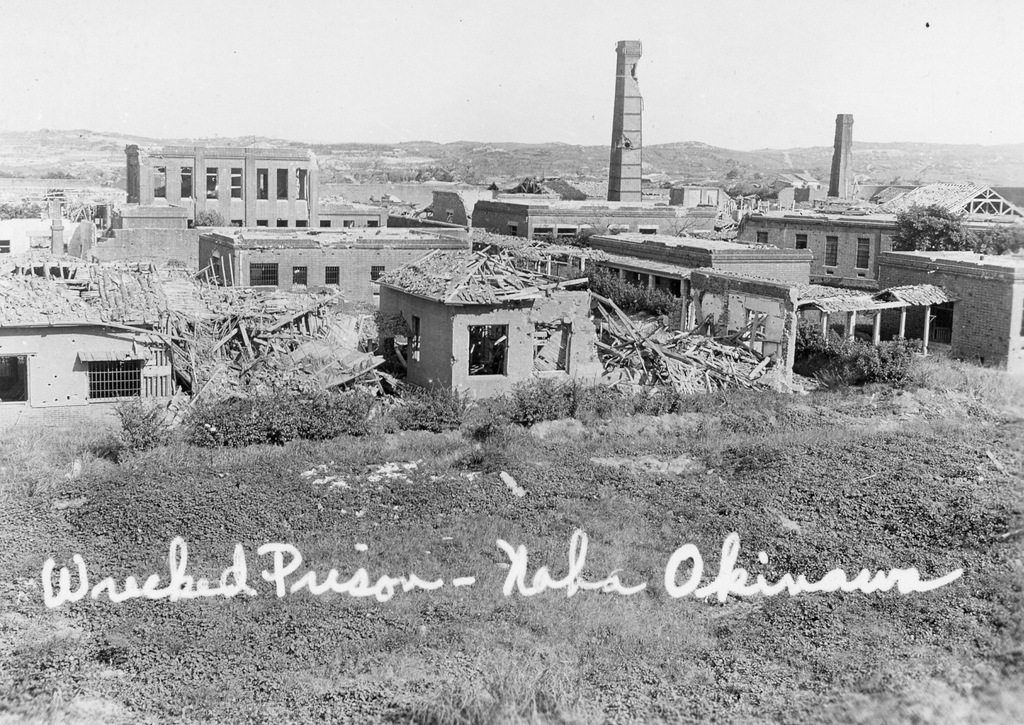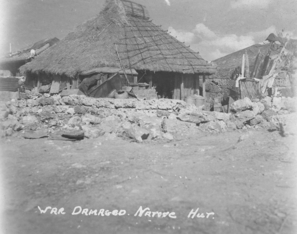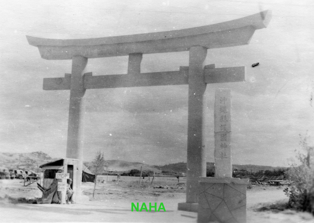 Scenes around Okinawa from the album of Cpl. Robert Hetrick. Naha war damage, Naminoue Shrine, Futenma Shrine, Yank magazine building in Futenma, Itoman village, the Okinawa people at work rebuilding their lives after the war.