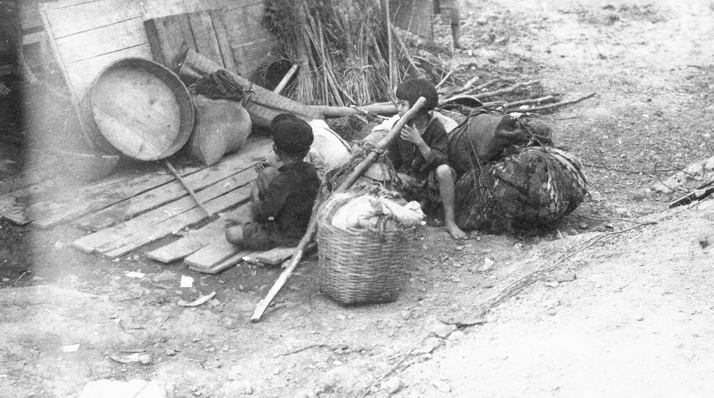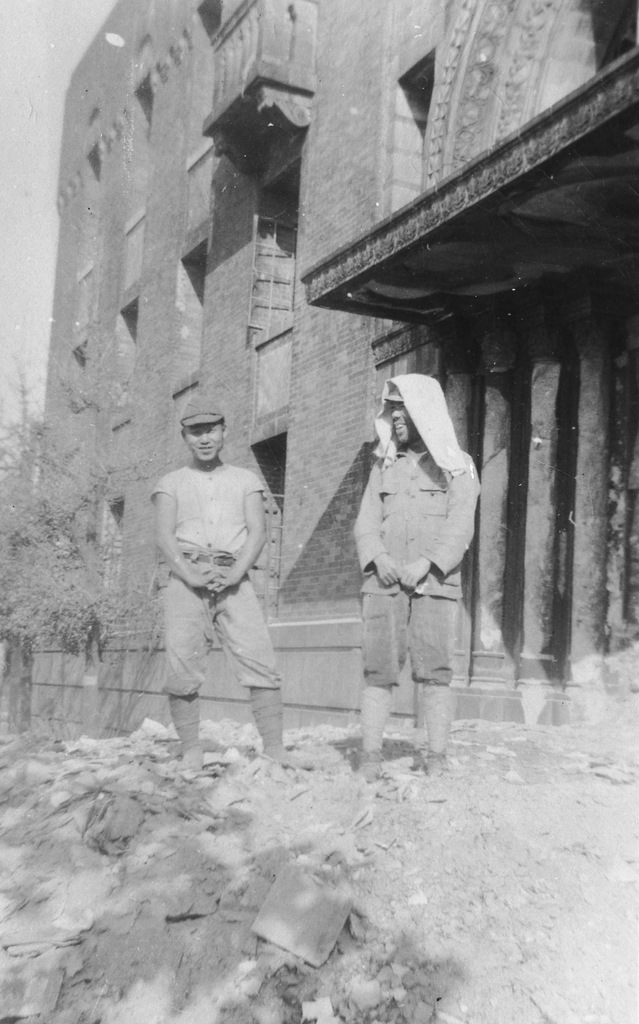 Scenes around Okinawa from the album of Cpl. Robert Hetrick. Naha war damage, an Okinawan blacksmith, and the Okinawa people at work rebuilding their lives after the war.