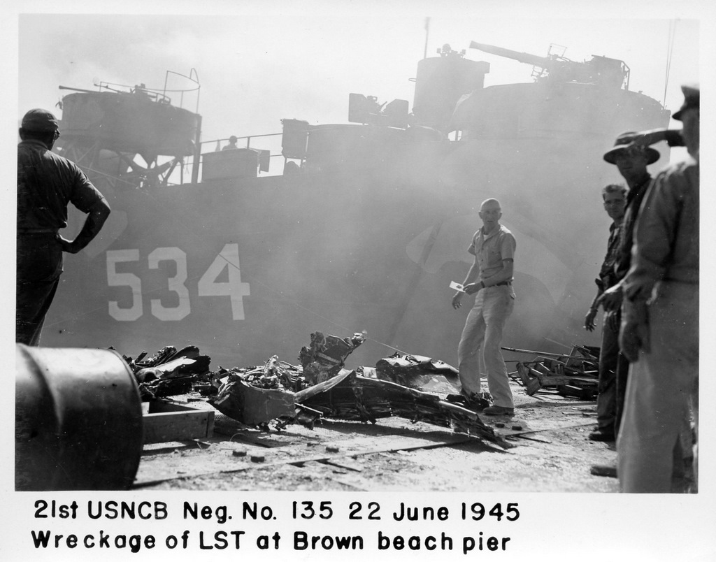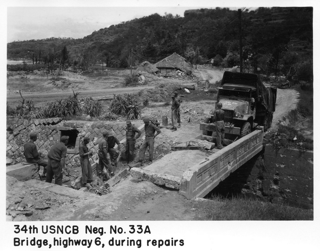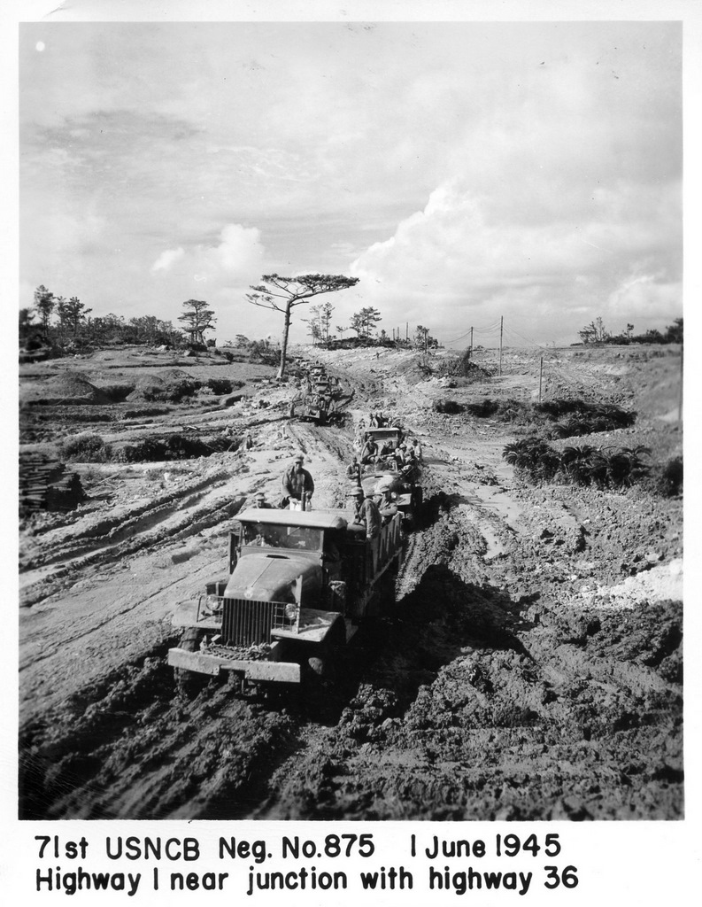 The book appears to attempt to tell the story of some of the officers involved in the Naval Construction Troops and the construction projects on Okinawa that they oversaw. The commander of NCT was Commodore Andrew G. Bisset, below is a short history of CNCT on Okinawa. The photo dates span the time frame during which Commodore Bisset was first Commander of CCT and then Commander of NCT.