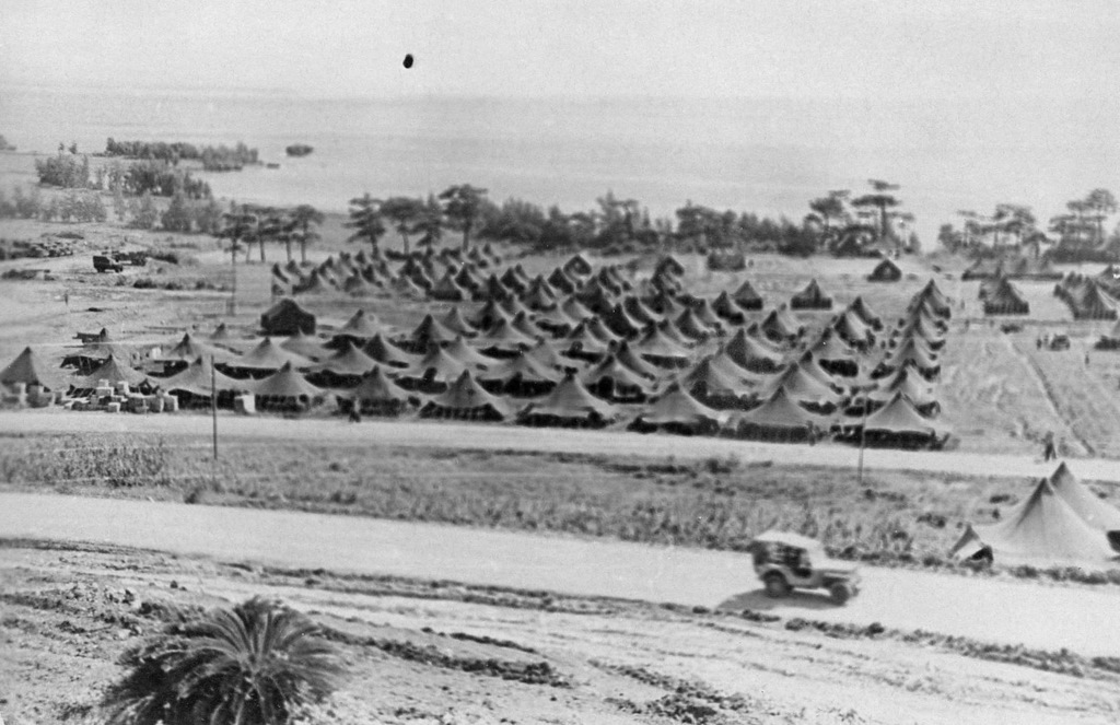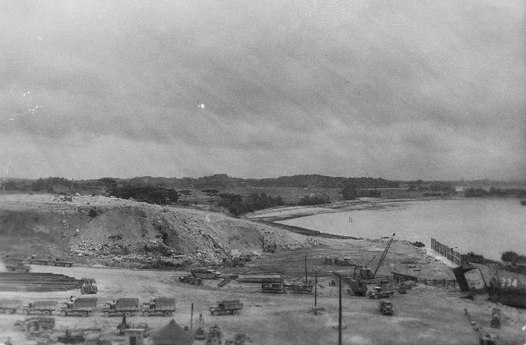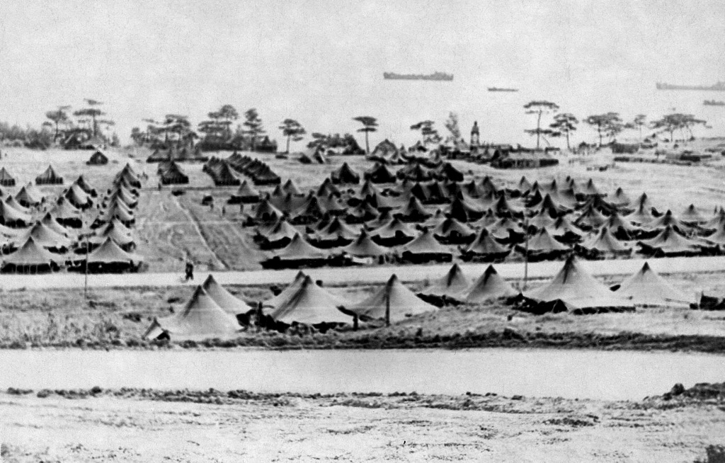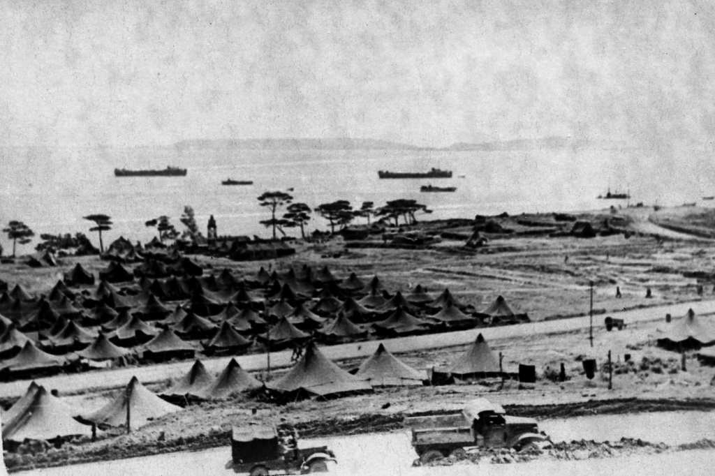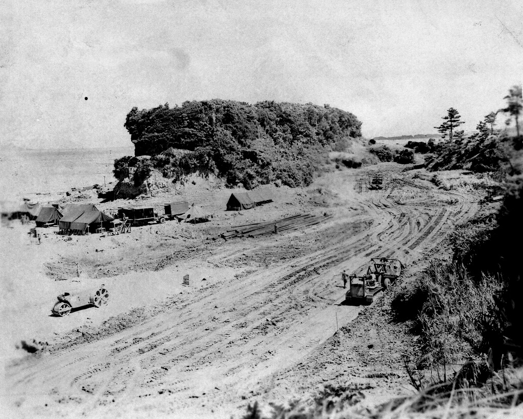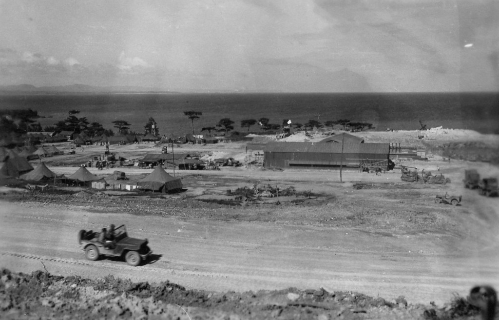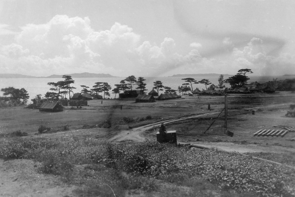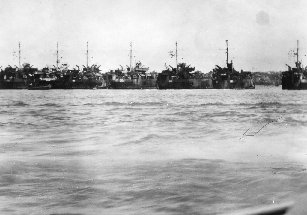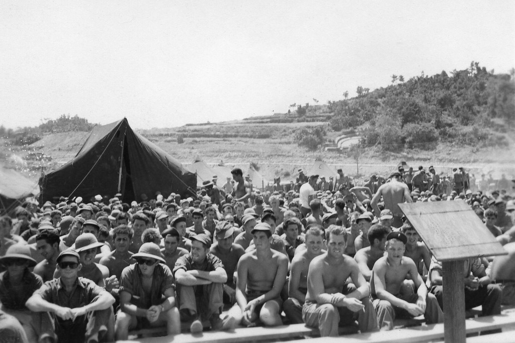 Scenes showing some of the military cemeteries on Okinawa, GI movie theaters, and unloading LST's