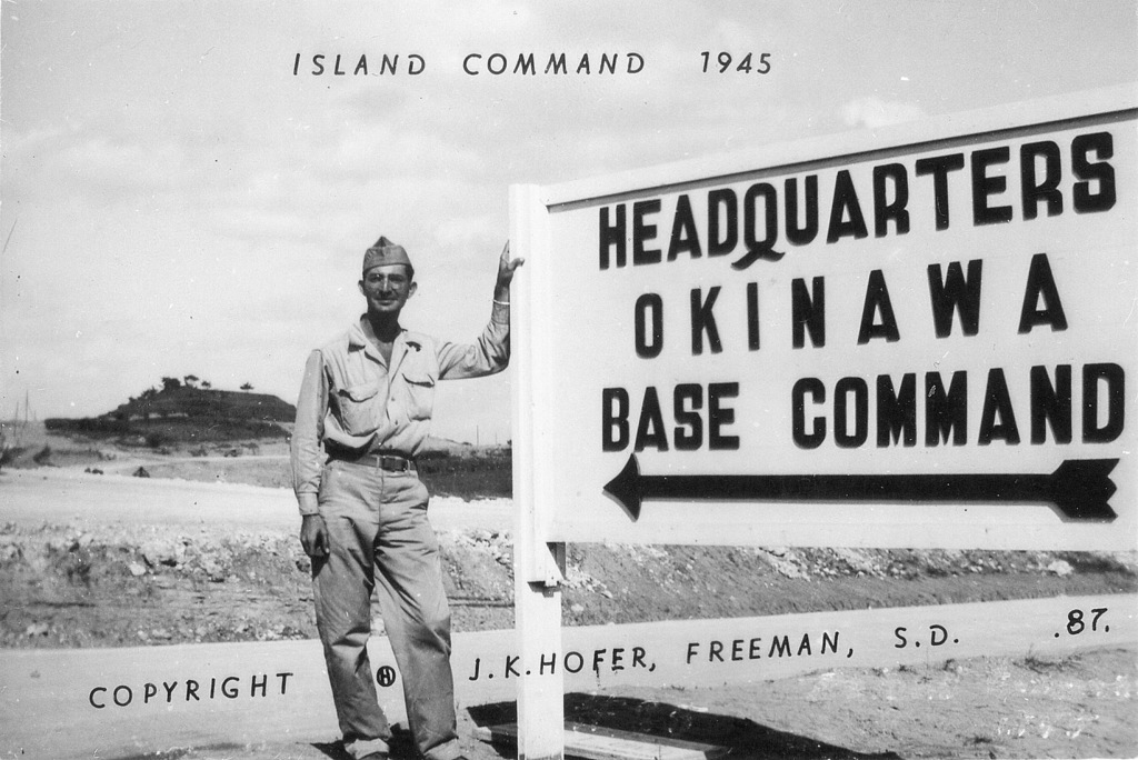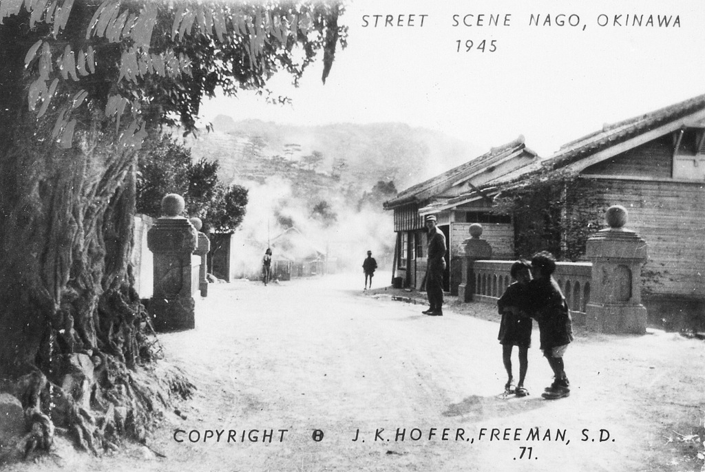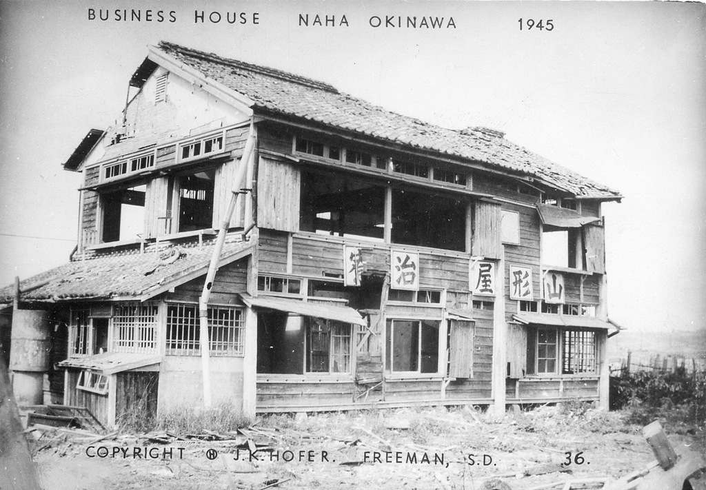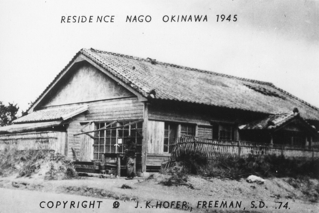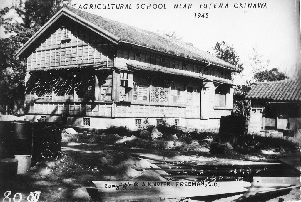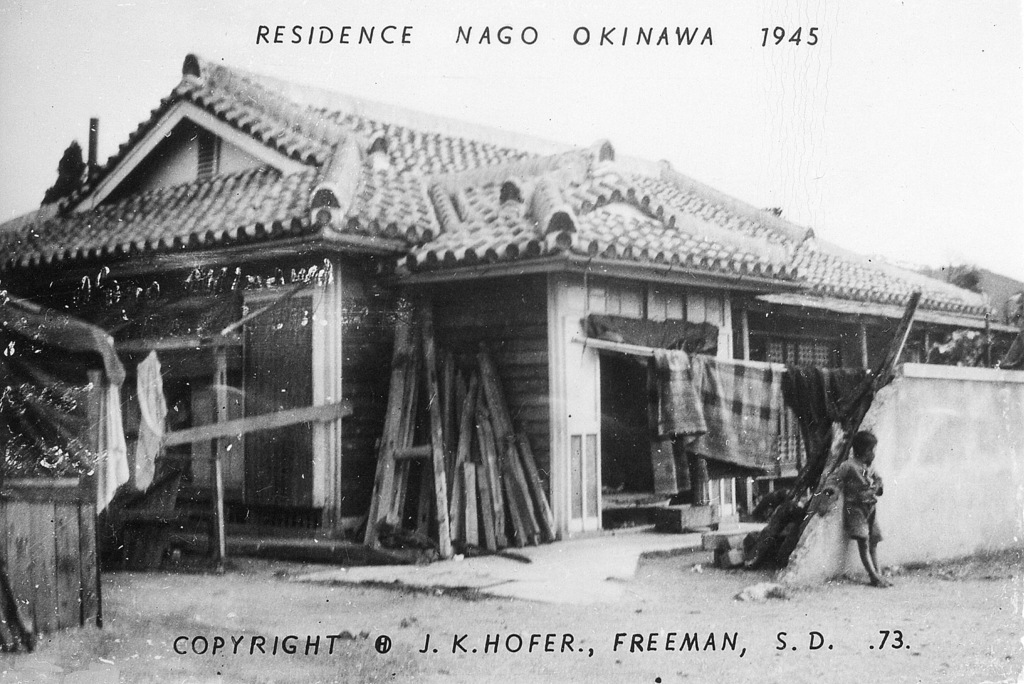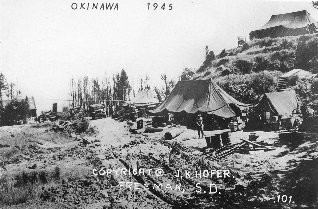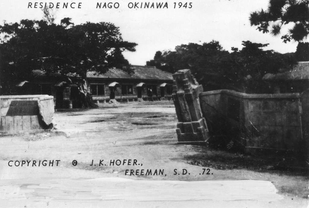 Based on information I received from the historical museum in Freeman South Dakota, population 1300, J.K. Hofer was John K. Hofer Jr. whose name appears on the below photos. John Jr. lived and worked in Freeman S.D prior to WWII. He worked for his father John K. Hofer Sr. who was a pharmacist, photographer, and owner of the local drug store. John Jr. worked for his father at the drug store and probably learned the photography business from him. After returning from Okinawa it appears that John Jr. went into the business of selling photos that he took while on Okinawa in 1945-46, based on the 120 numbers photos (minus a few numbers) that appear on these pages. The historical museum has identified the first photo shown as that of John K Hofer Jr.