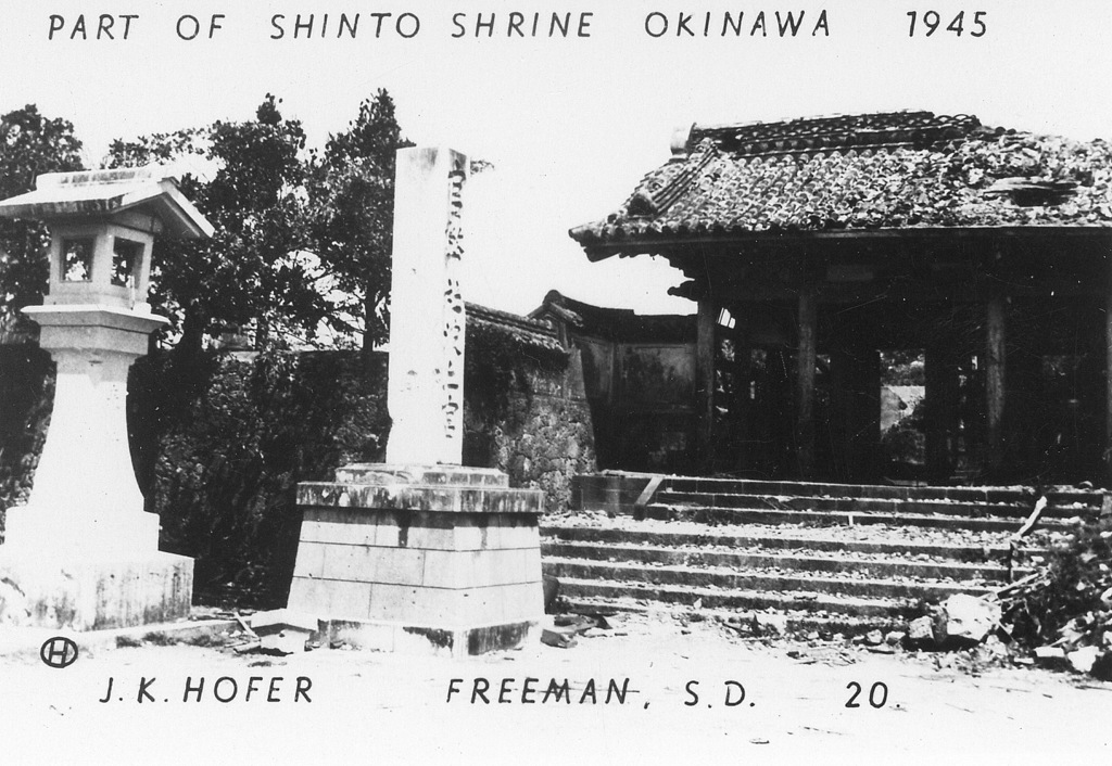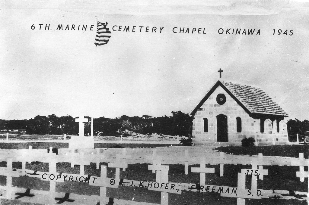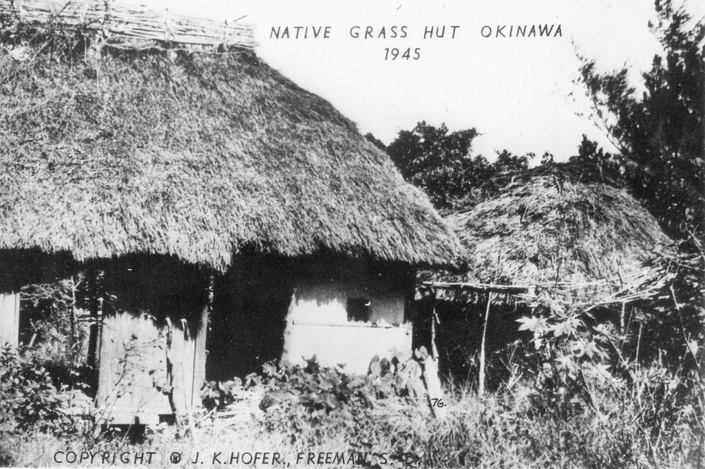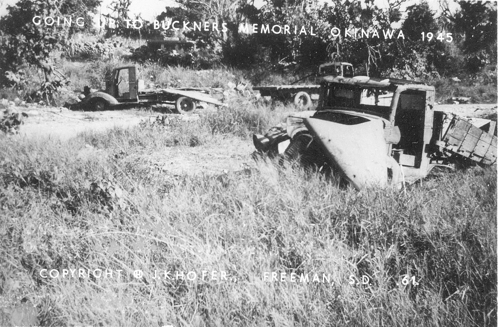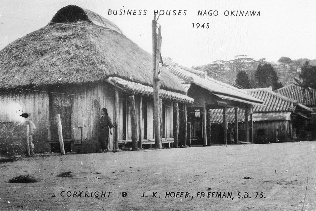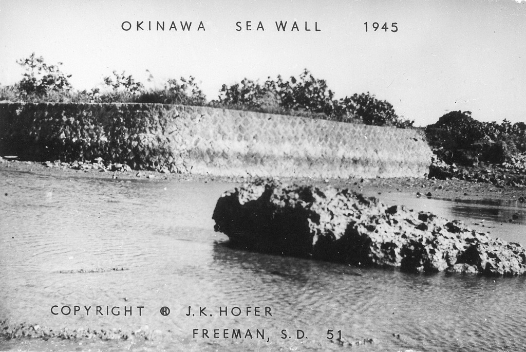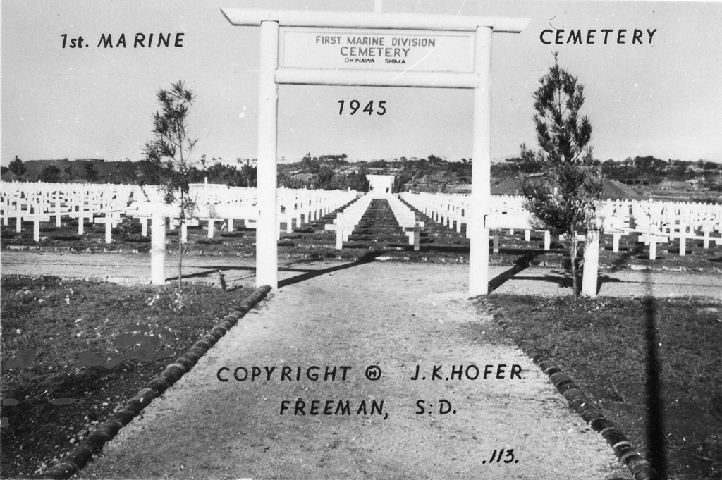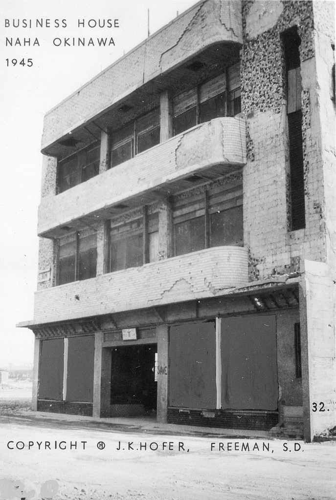 Based on information I received from the historical museum in Freeman South Dakota, population 1300, J.K. Hofer was John K. Hofer Jr. whose name appears on the below photos. John Jr. lived and worked in Freeman S.D prior to WWII. He worked for his father John K. Hofer Sr. who was a pharmacist, photographer, and owner of the local drug store. John Jr. worked for his father at the drug store and probably learned the photography business from him. After returning from Okinawa it appears that John Jr. went into the business of selling photos that he took while on Okinawa in 1945-46, based on the 120 numbers photos (minus a few numbers) that appear on these pages. The historical museum has identified the first photo shown as that of John K Hofer Jr.