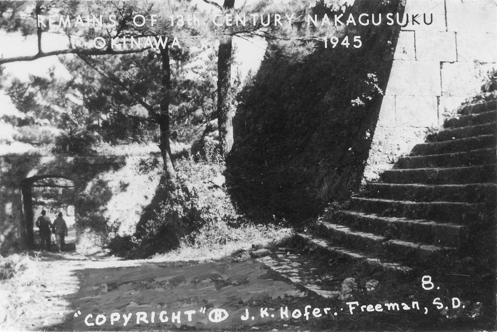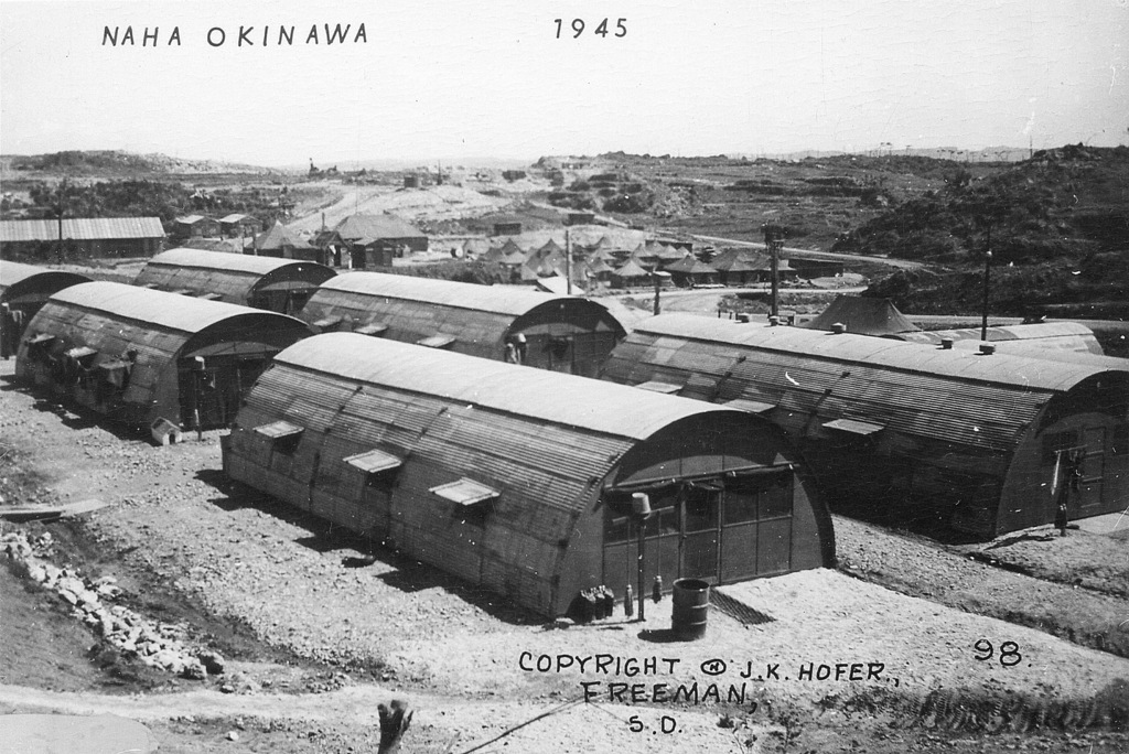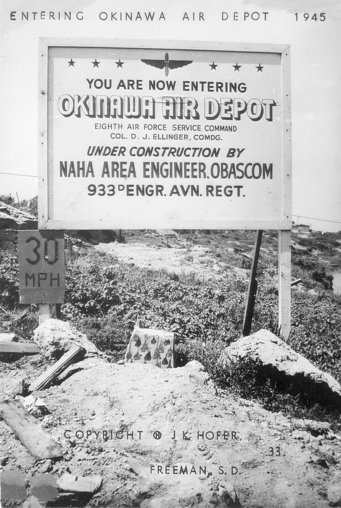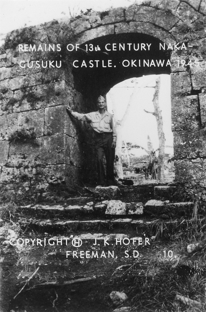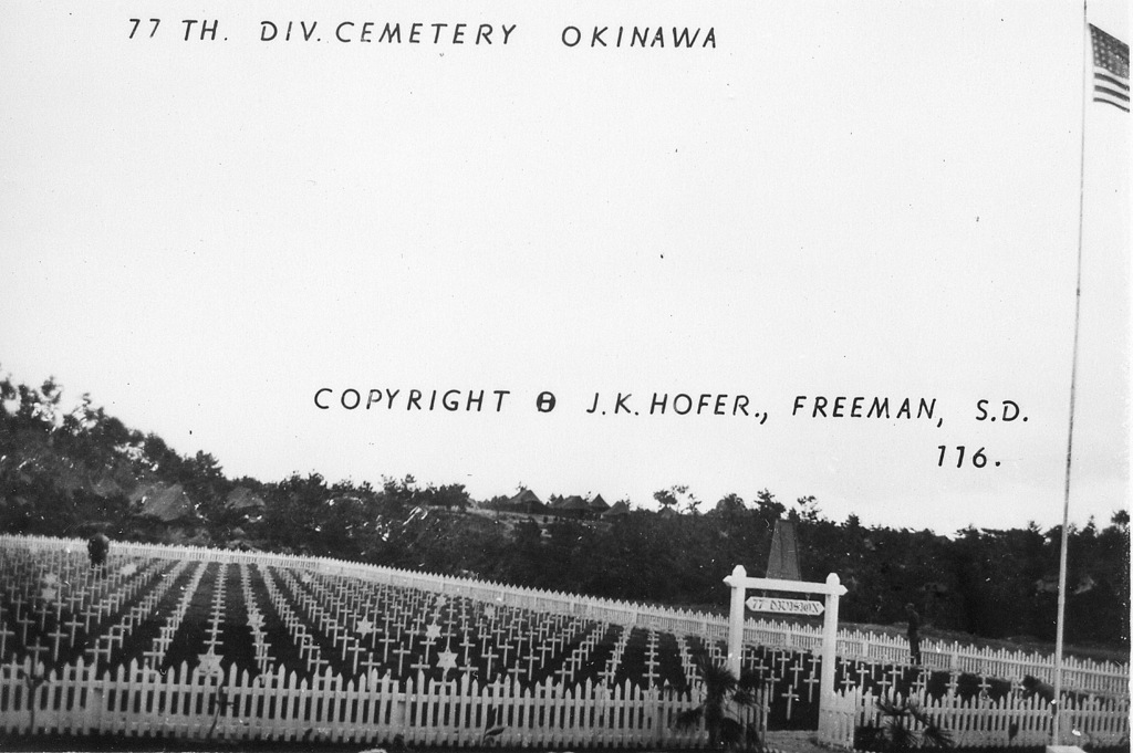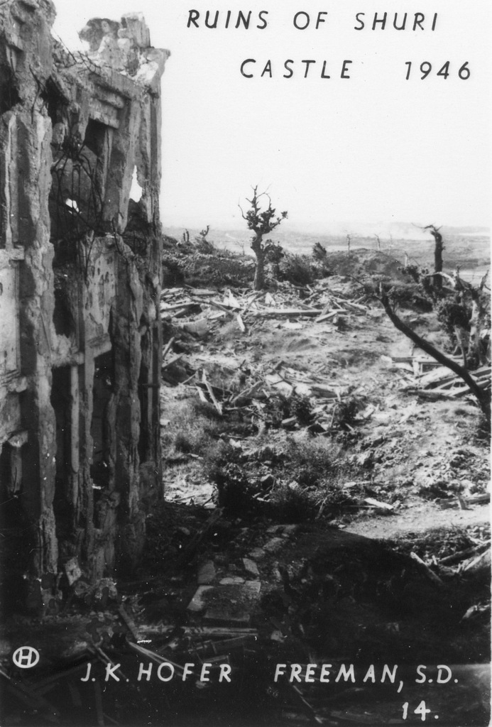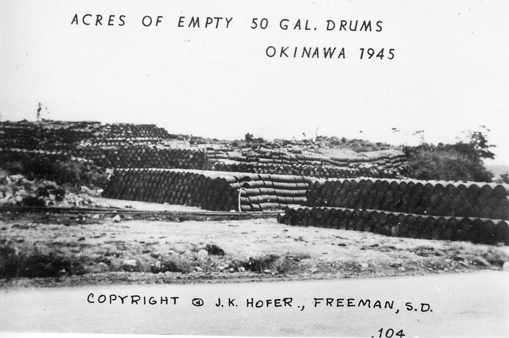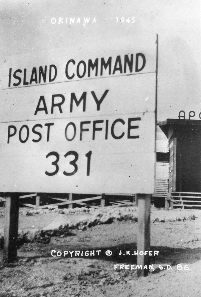 Based on information I received from the historical museum in Freeman South Dakota, population 1300, J.K. Hofer was John K. Hofer Jr. whose name appears on the below photos. John Jr. lived and worked in Freeman S.D prior to WWII. He worked for his father John K. Hofer Sr. who was a pharmacist, photographer, and owner of the local drug store. John Jr. worked for his father at the drug store and probably learned the photography business from him. After returning from Okinawa it appears that John Jr. went into the business of selling photos that he took while on Okinawa in 1945-46, based on the 120 numbers photos (minus a few numbers) that appear on these pages. The historical museum has identified the first photo shown as that of John K Hofer Jr.
