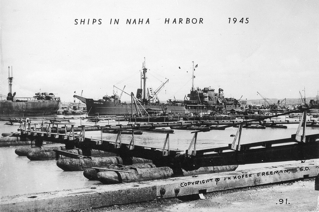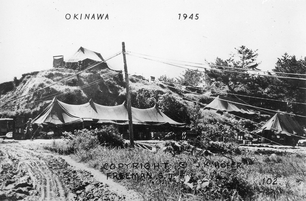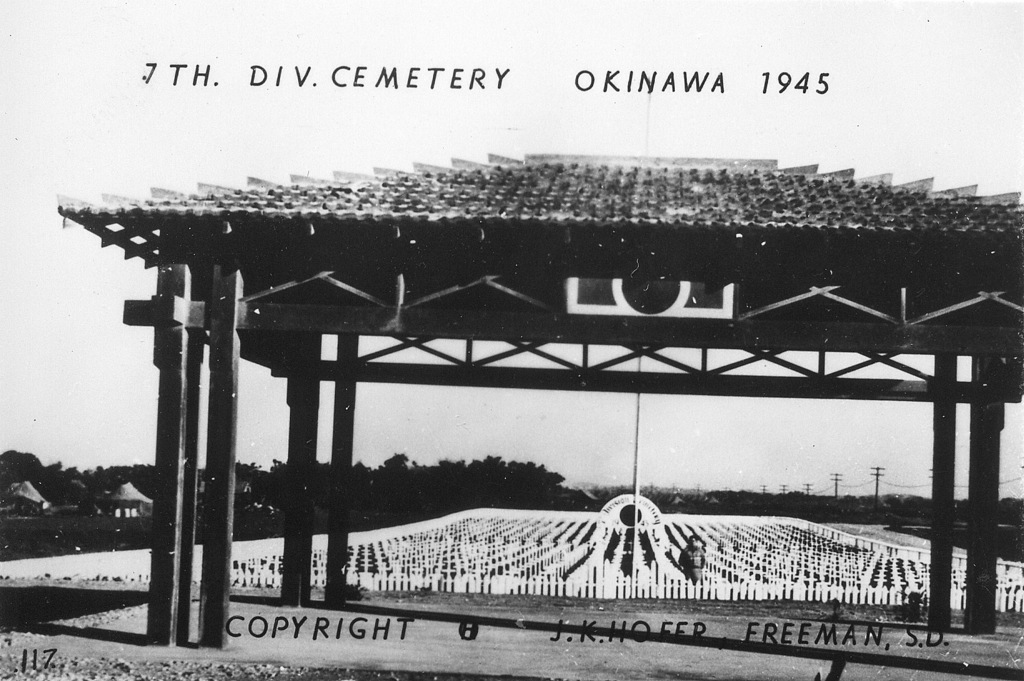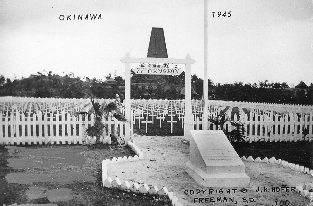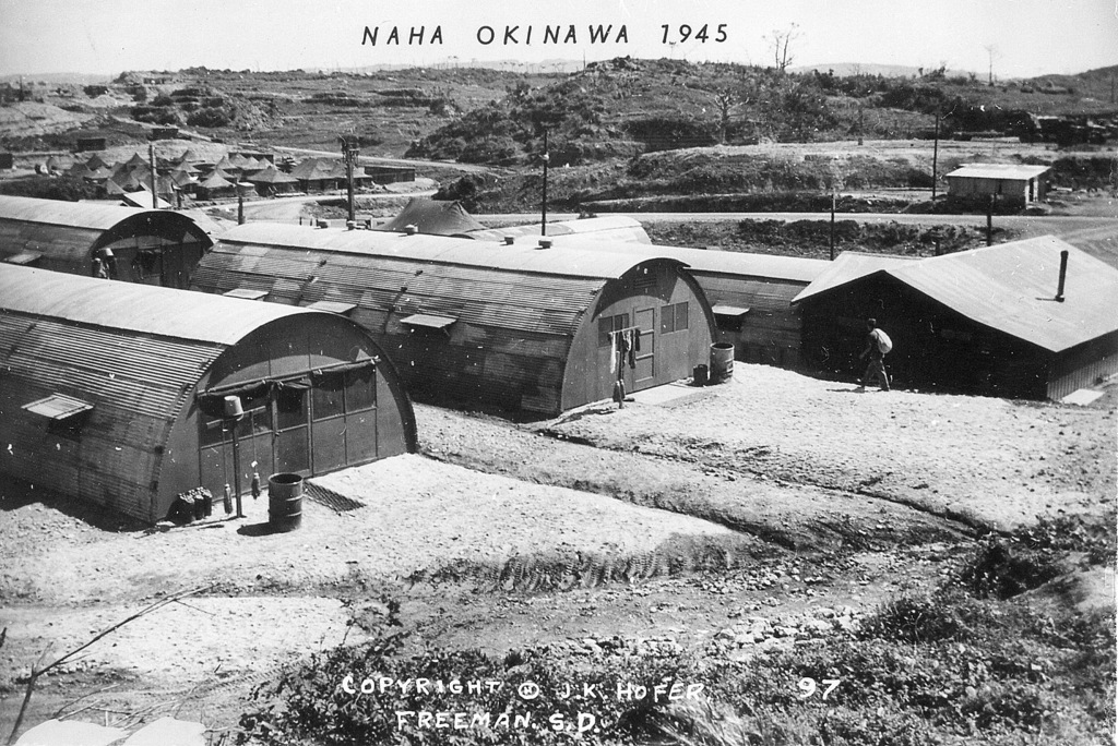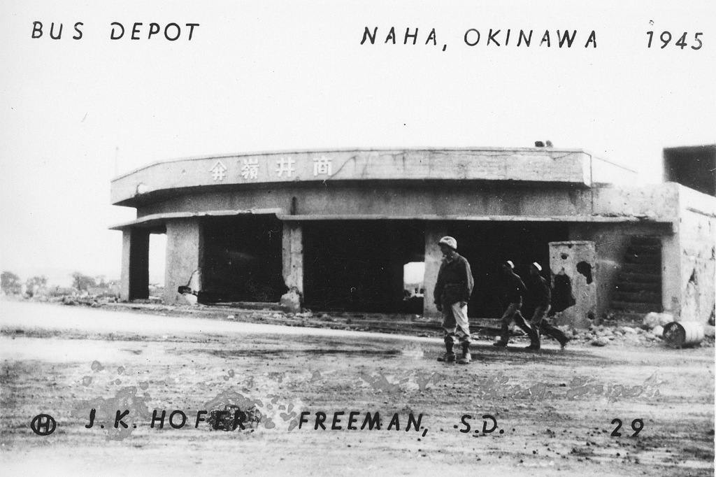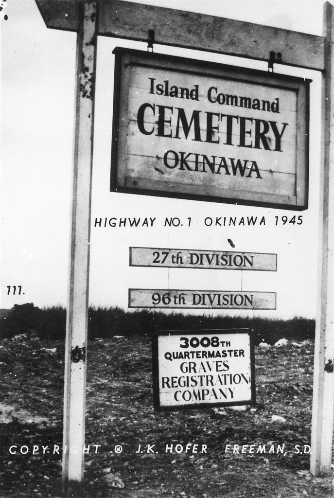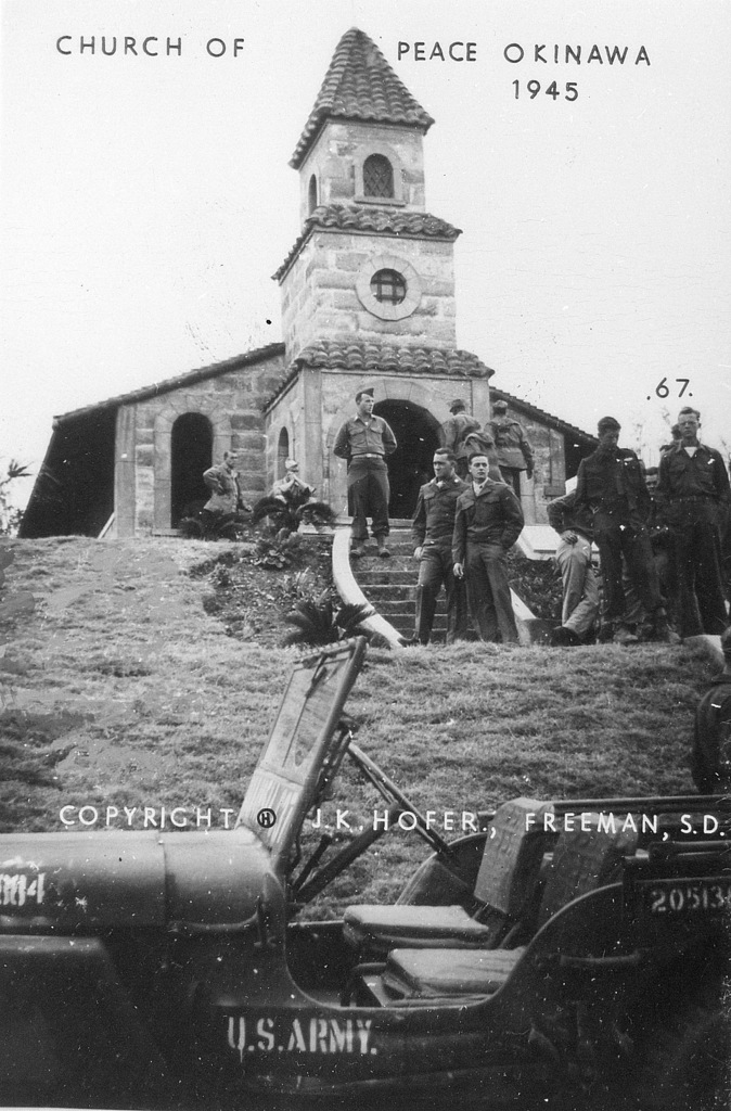 Based on information I received from the historical museum in Freeman South Dakota, population 1300, J.K. Hofer was John K. Hofer Jr. whose name appears on the below photos. John Jr. lived and worked in Freeman S.D prior to WWII. He worked for his father John K. Hofer Sr. who was a pharmacist, photographer, and owner of the local drug store. John Jr. worked for his father at the drug store and probably learned the photography business from him. After returning from Okinawa it appears that John Jr. went into the business of selling photos that he took while on Okinawa in 1945-46, based on the 120 numbers photos (minus a few numbers) that appear on these pages. The historical museum has identified the first photo shown as that of John K Hofer Jr.