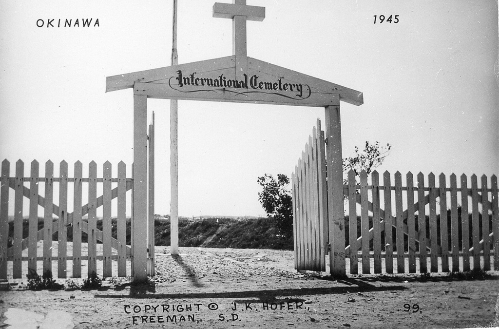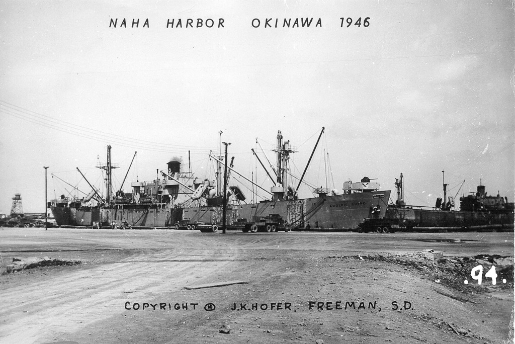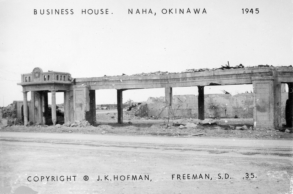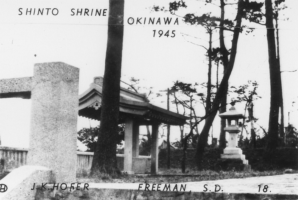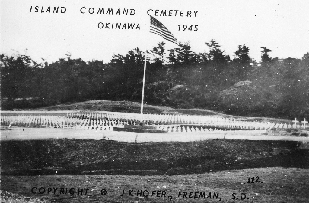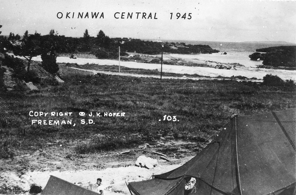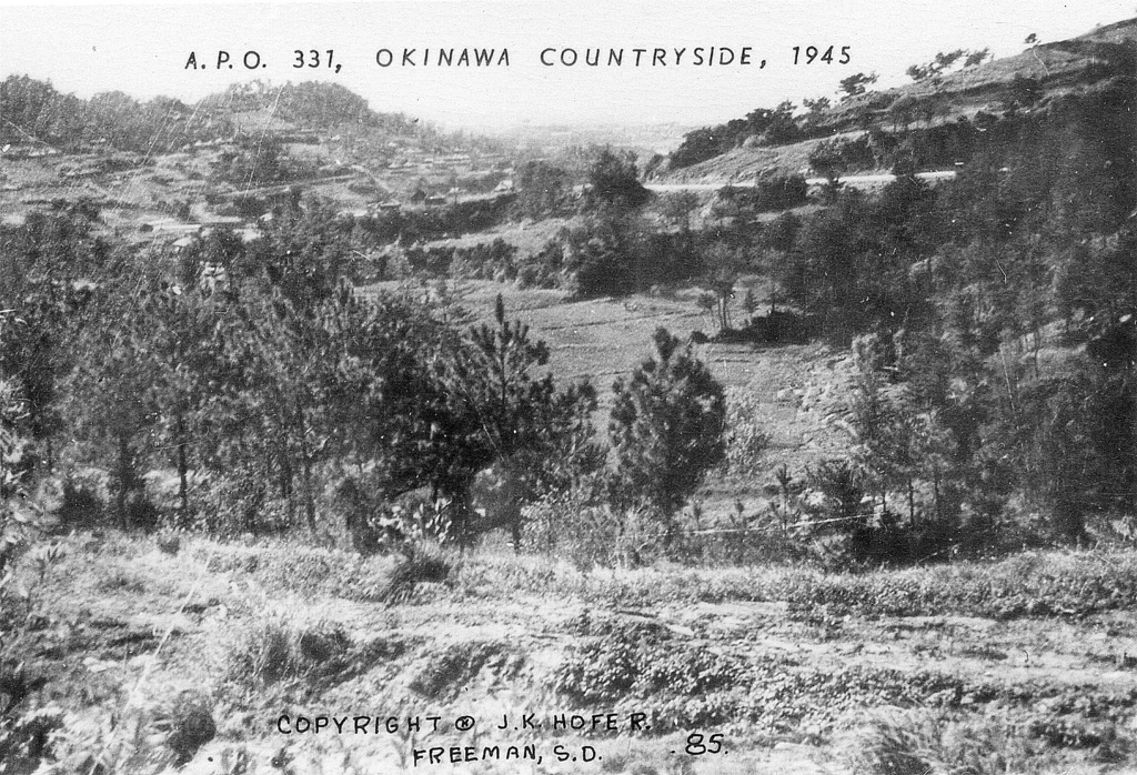 Based on information I received from the historical museum in Freeman South Dakota, population 1300, J.K. Hofer was John K. Hofer Jr. whose name appears on the below photos. John Jr. lived and worked in Freeman S.D prior to WWII. He worked for his father John K. Hofer Sr. who was a pharmacist, photographer, and owner of the local drug store. John Jr. worked for his father at the drug store and probably learned the photography business from him. After returning from Okinawa it appears that John Jr. went into the business of selling photos that he took while on Okinawa in 1945-46, based on the 120 numbers photos (minus a few numbers) that appear on these pages. The historical museum has identified the first photo shown as that of John K Hofer Jr.
