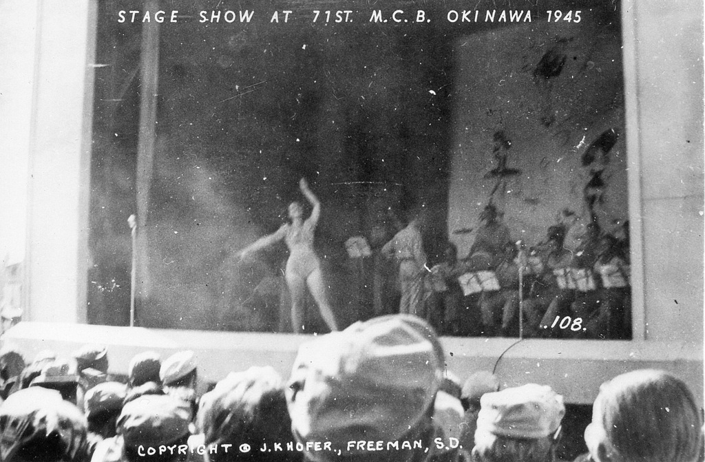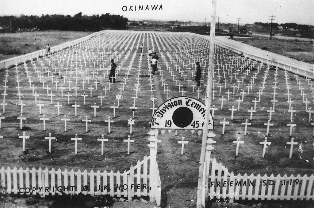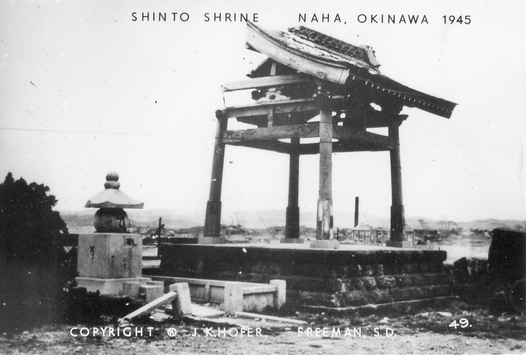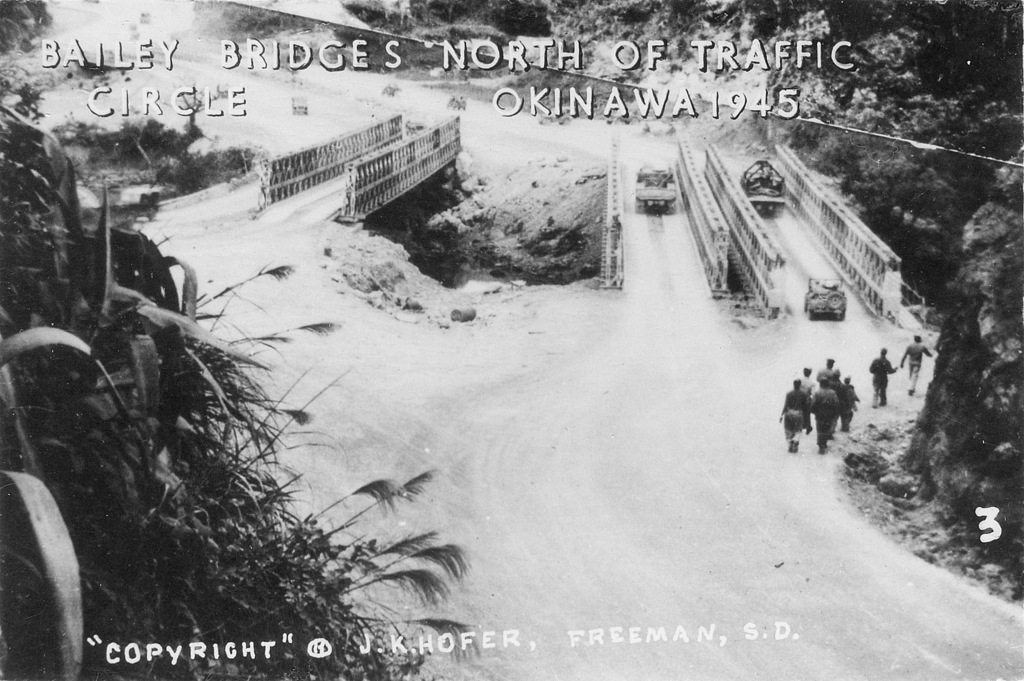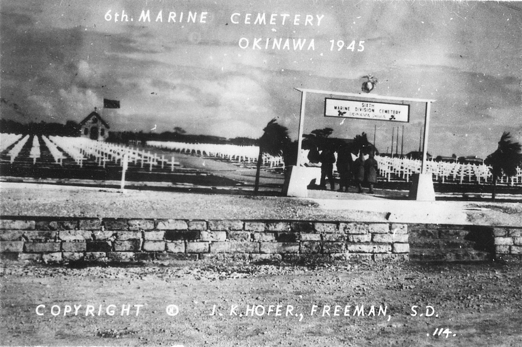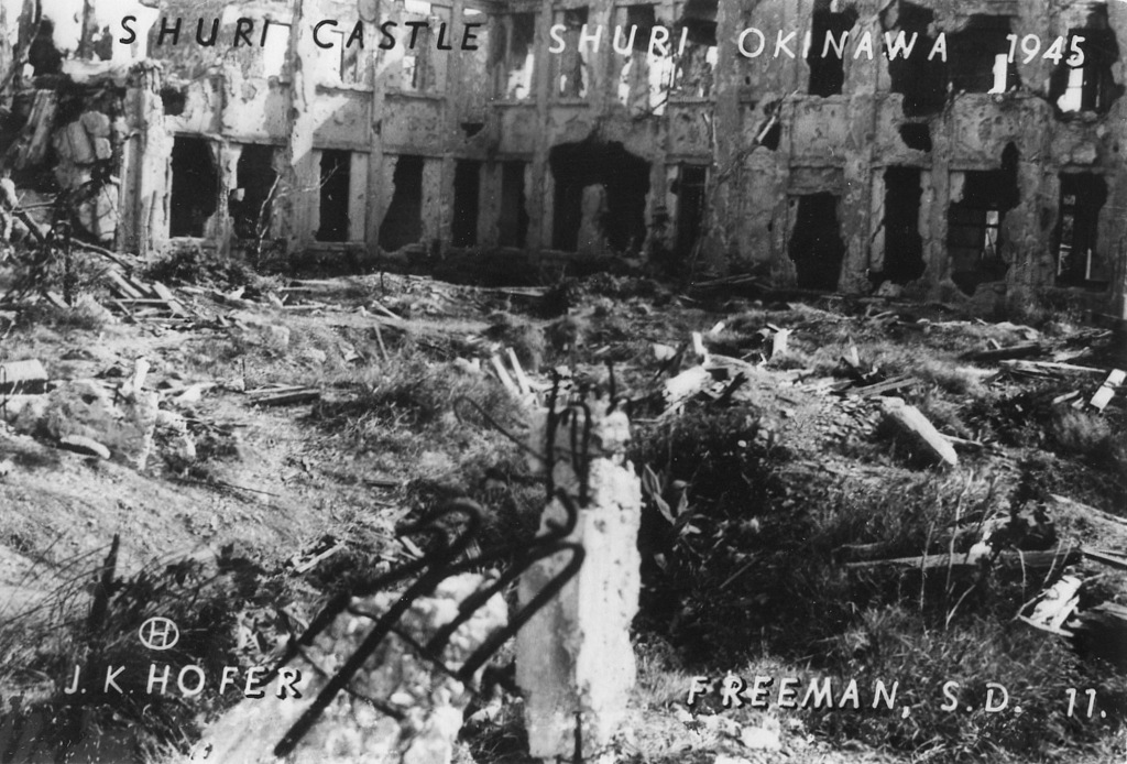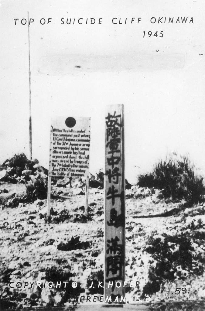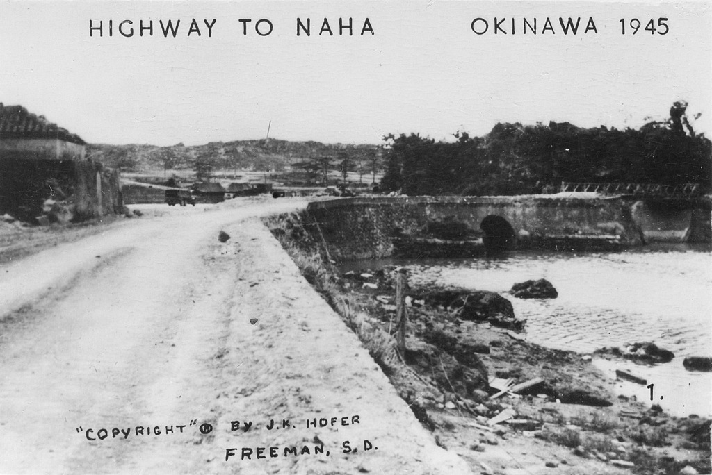 Based on information I received from the historical museum in Freeman South Dakota, population 1300, J.K. Hofer was John K. Hofer Jr. whose name appears on the below photos. John Jr. lived and worked in Freeman S.D prior to WWII. He worked for his father John K. Hofer Sr. who was a pharmacist, photographer, and owner of the local drug store. John Jr. worked for his father at the drug store and probably learned the photography business from him. After returning from Okinawa it appears that John Jr. went into the business of selling photos that he took while on Okinawa in 1945-46, based on the 120 numbers photos (minus a few numbers) that appear on these pages. The historical museum has identified the first photo shown as that of John K Hofer Jr.