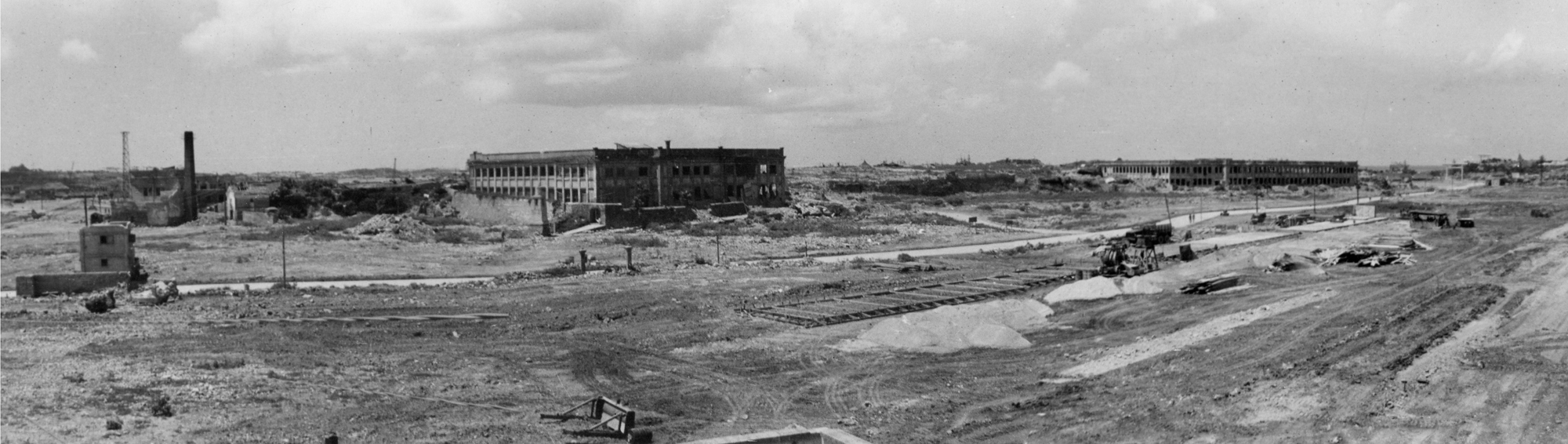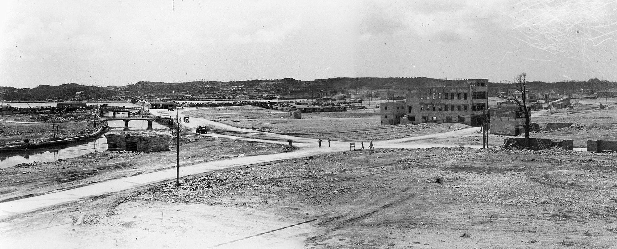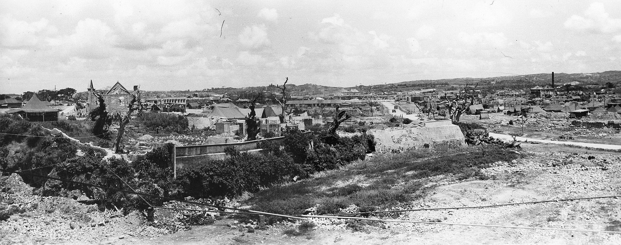 There are also three panoramas of Naha (middle left, middle right, bottom left) just after the end of the war, and a view of the harbor at Naha (bottom right).