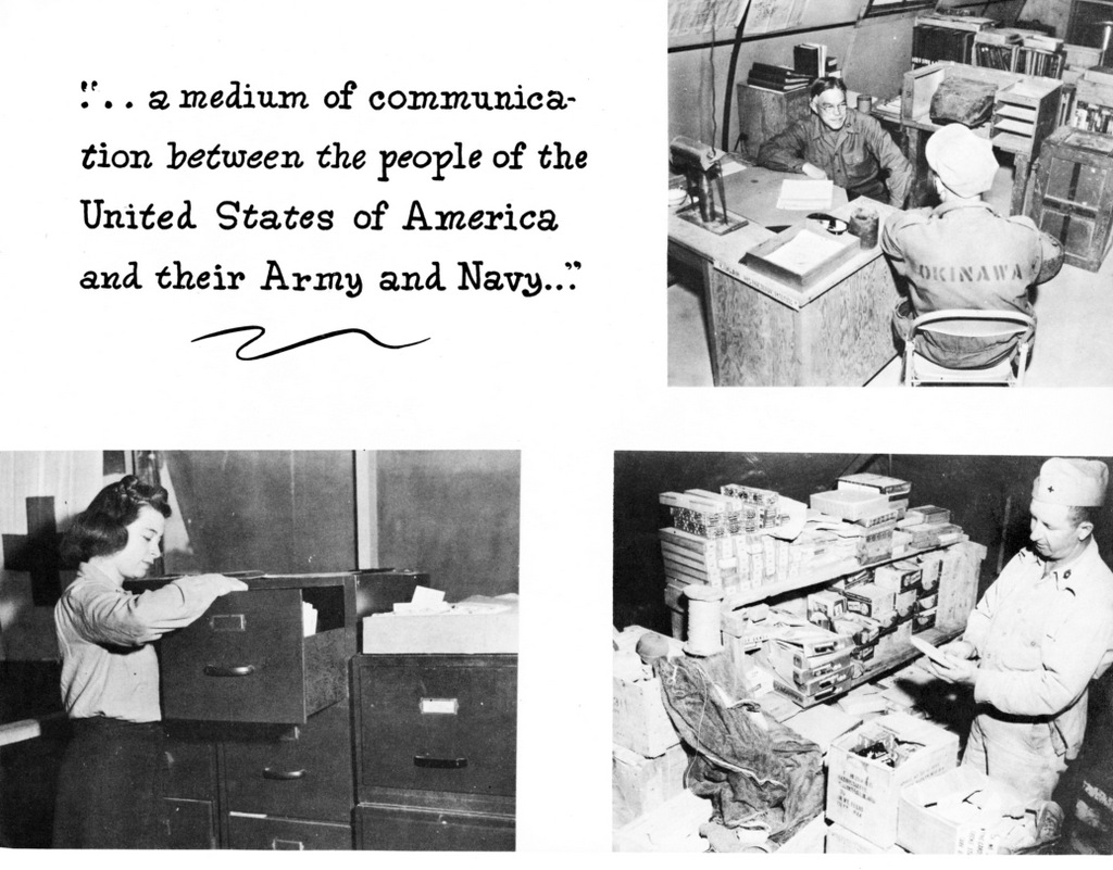 Full copy of a booklet produced by the American Red Cross on Okinawa in 1946. Shows the work that they were doing to help the GI's on Okinawa during the war and just after.