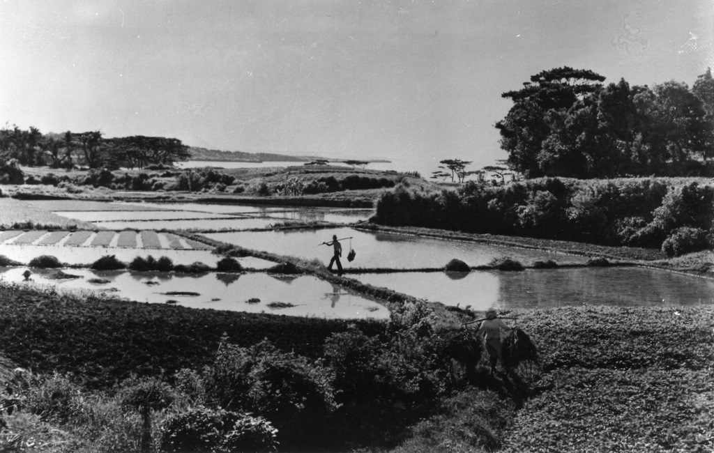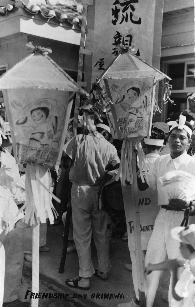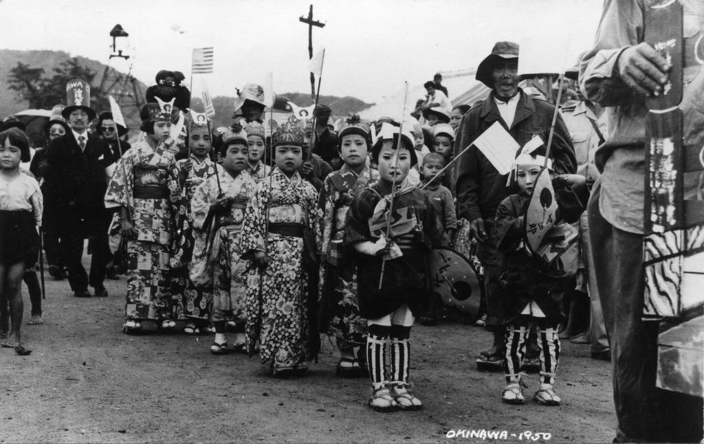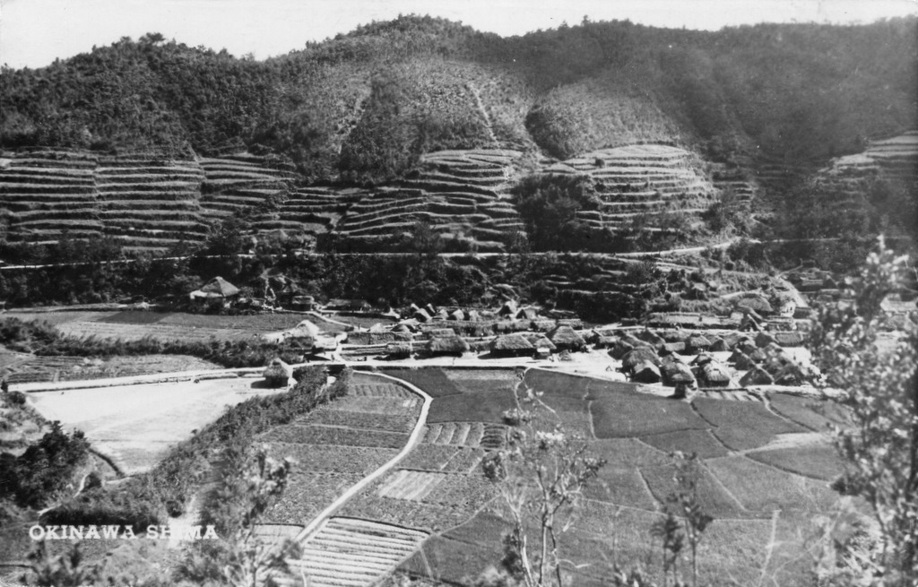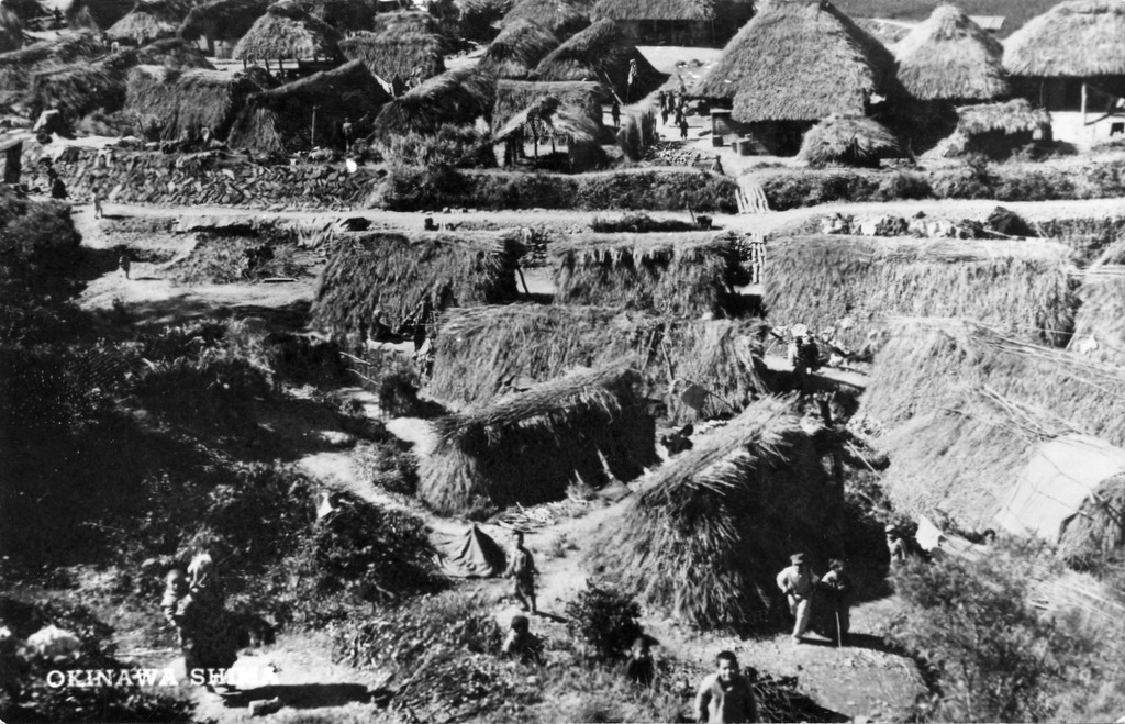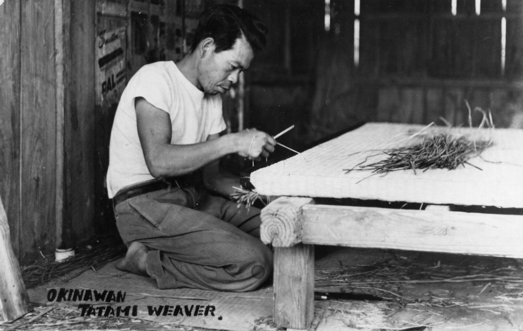 Various scenes from Shuri (Shurei), Naminoue, Rycom Army Headquarters at Fort Buckner (now Camp Foster), Kin Shrine, Tatami weaving by hand, and Camp Kue (Camp Kuwae) now Camp Lester Hospital