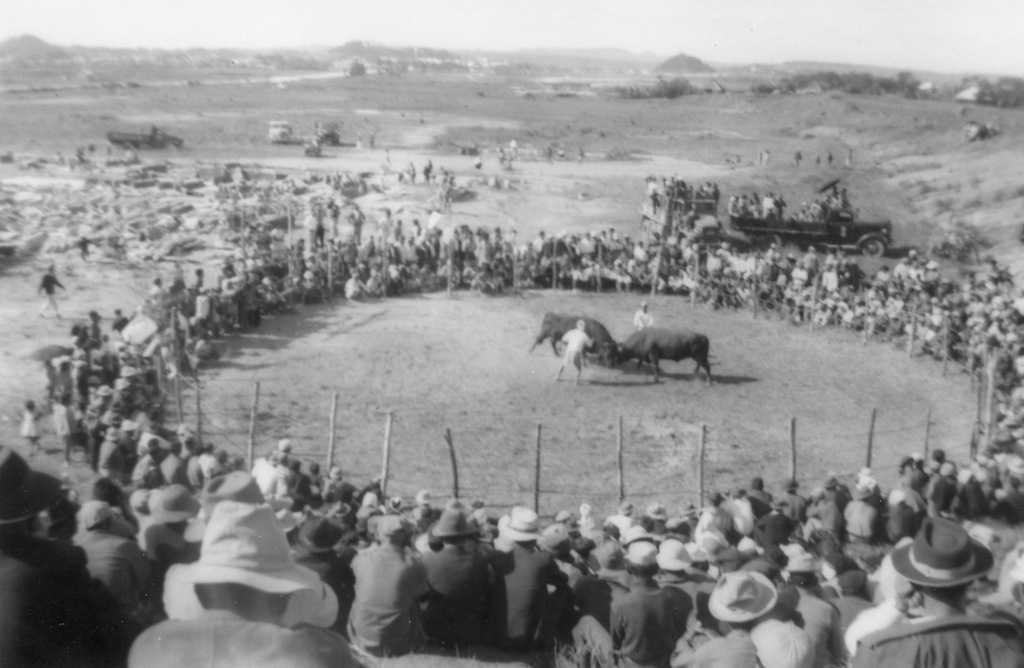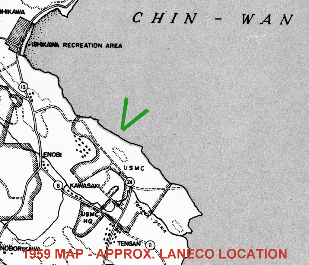 Photos and color slide taken by Marie Seibert who worked for Laneco on Okinawa from 1952 to 1955. Laneco had a contract with the Okinawa Engineer District to build steel oil-storage tanks and the installation of these tanks underground; the laying of oil pipeline from the storage tanks to pumping stations; the erecting of pumping stations; the laying of distribution lines from the pumping stations to an airfield and certain other areas; and the building of certain roads and bridges alongside the above-mentioned pipelines. Laneco had its headquarters and housing on the south coast of Chimu-Wan (Kin Bay) in what is today Camp Courtney.