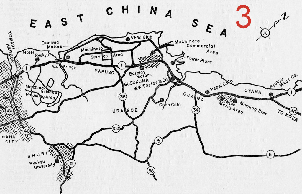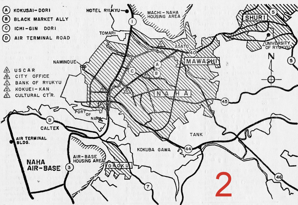 - Map #2 Naha, Kokusai-Dori, Black Market Alley, USCAR, Kokuei-Kan, Oroku, Naminoue, Tomari, Machinato, Shuri, University of Ryukyus