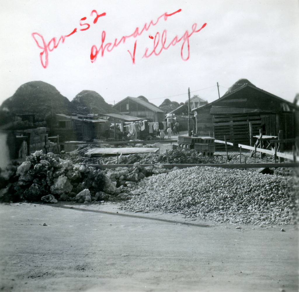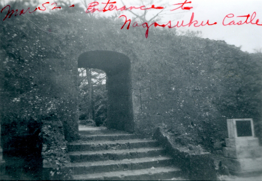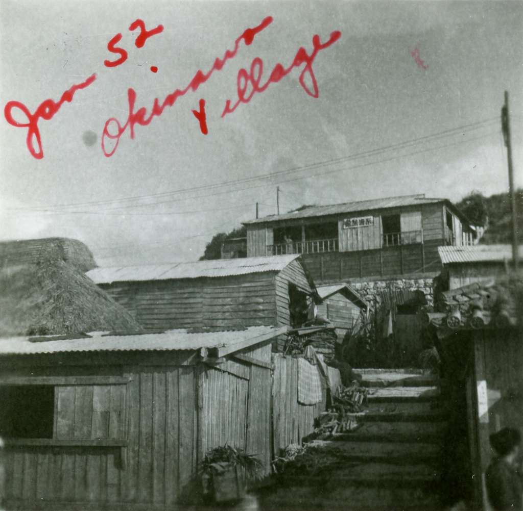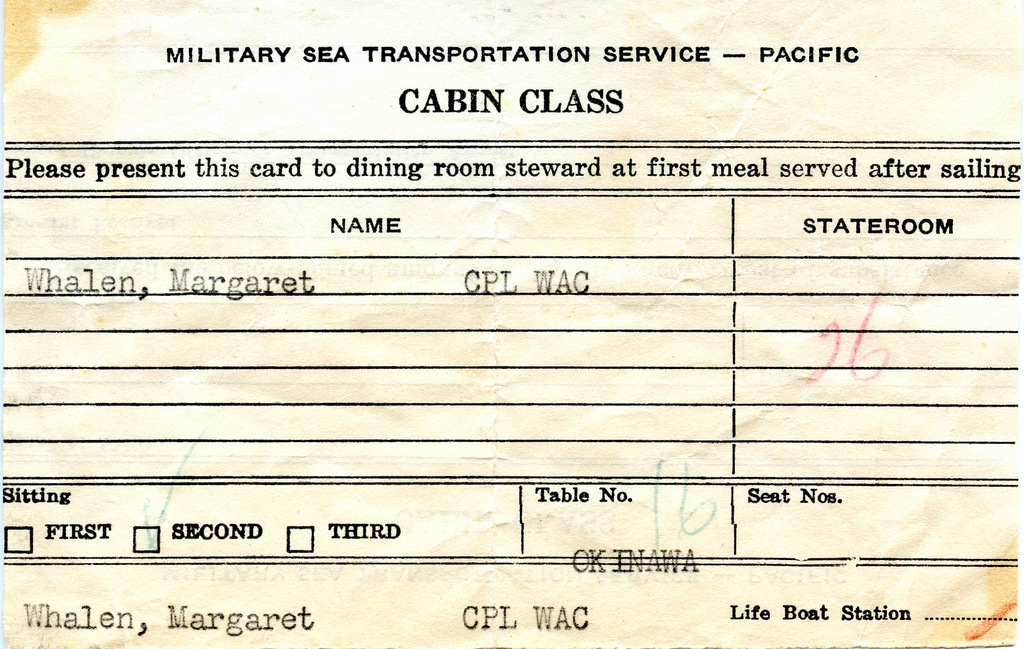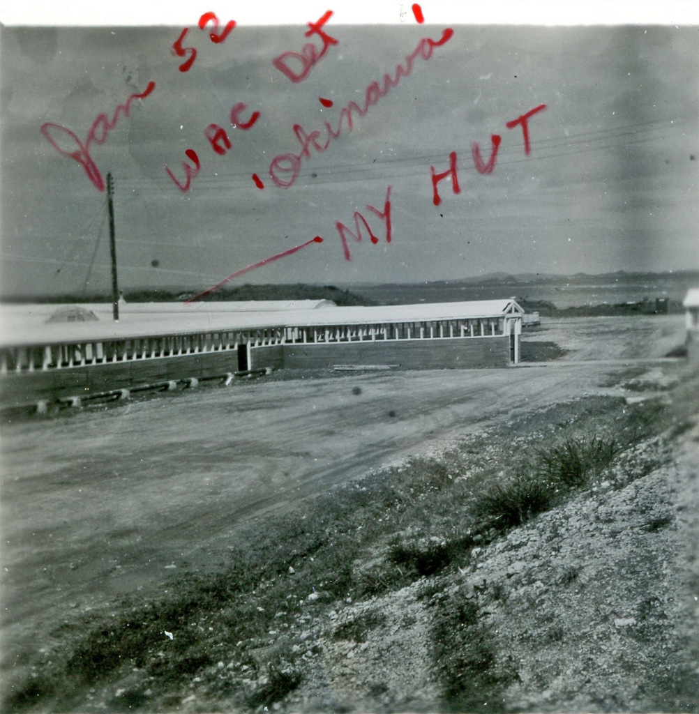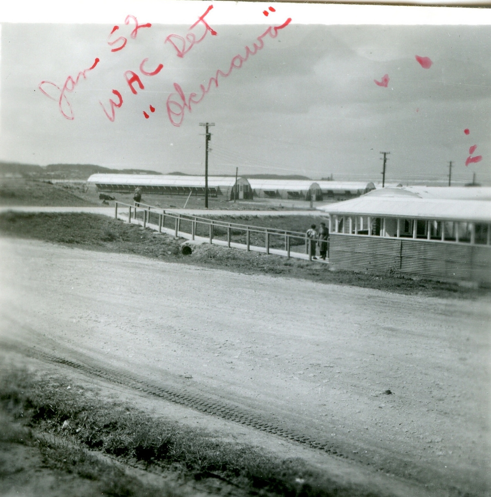 The photo album of Corporal Margaret Whalen, 8117th Army Unit (AU) WAC detachment APO 719 stationed at the Ryukyu Army Hospital, Camp Mercy Okinawa in 1952 during the Korean War. Starting with her trip to Okinawa aboard the USNS General N.M. Walker, including Christmas aboard, menu, gifts from the Red Cross and the ships newspaper. Photos of the Ryukyu Army Hospital at Camp Mercy, along with her PX ration cards, and Okinawan entertainment at the Camp Mercy NCO club. Photos of nearby villages, trips to Naha, she spells the pottery district of Tsuboya the way it sounded to her in English as Seuboyia. Photos of Heiwa Dori black market street. Even a photo of the old Ernie Pyle movie theater in Tsuboya. A visit to Nakagusuku castle, including a horse racing track at the castle. An interesting slice of WAC life on Okinawa during the Korean War.