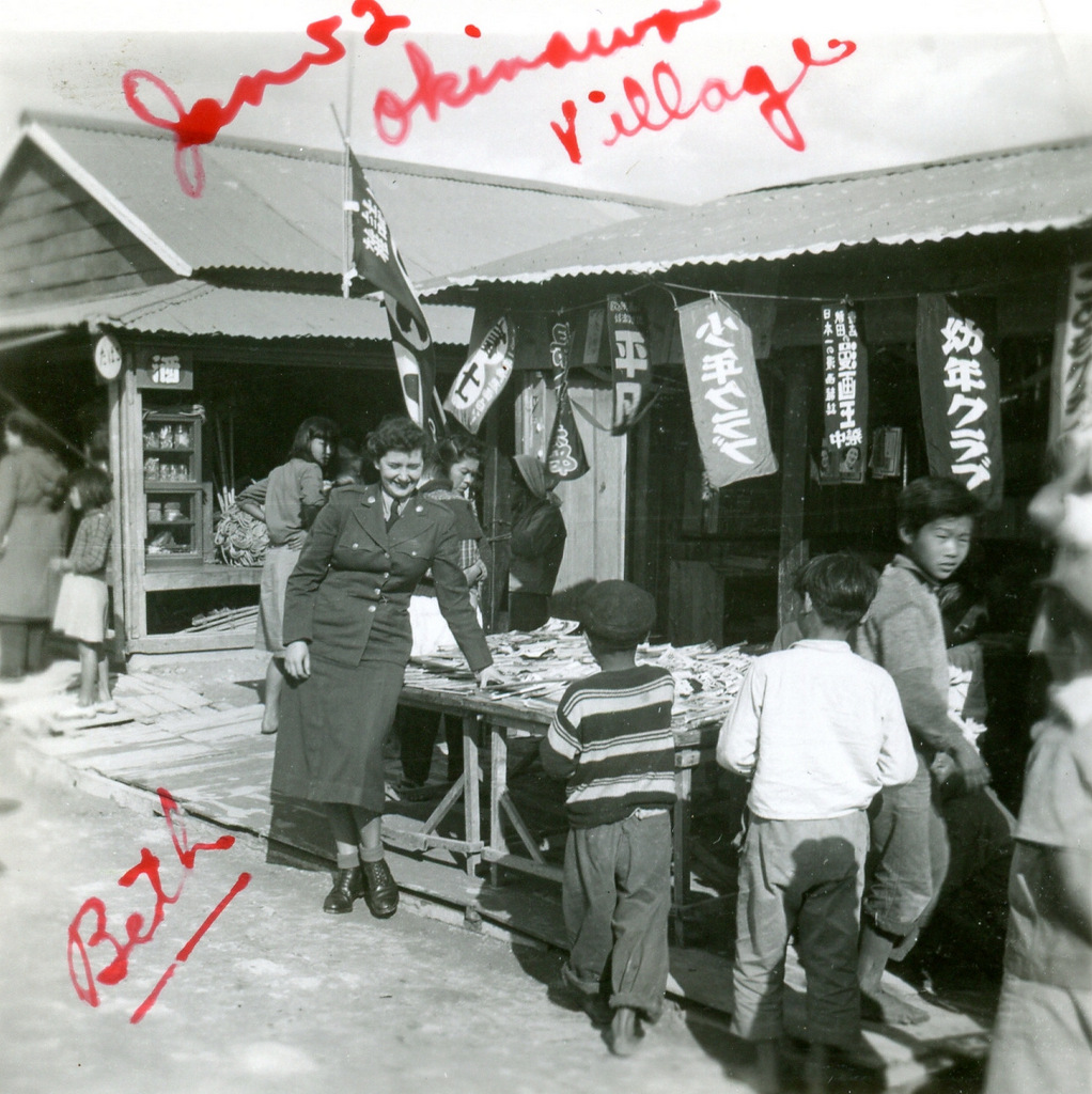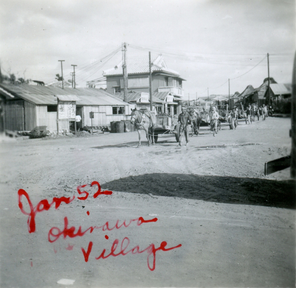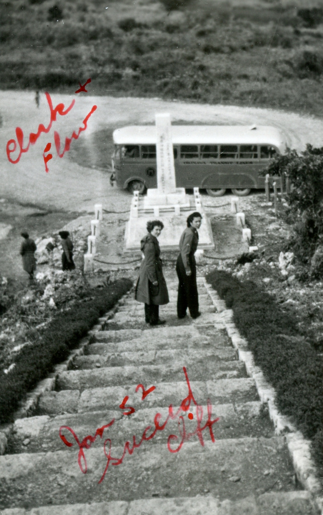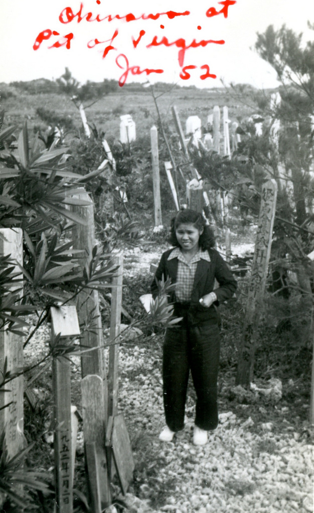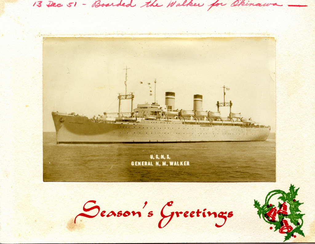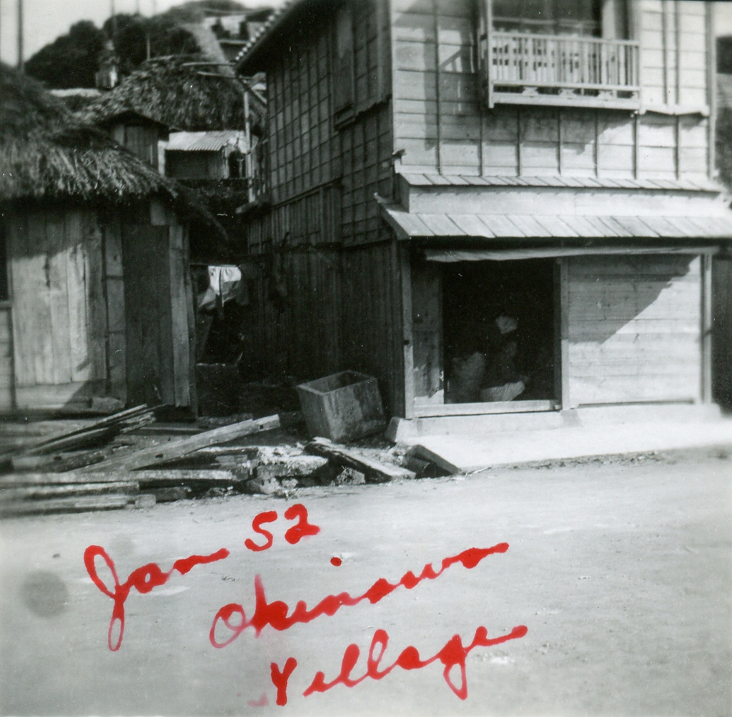 The photo album of Corporal Margaret Whalen, 8117th Army Unit (AU) WAC detachment APO 719 stationed at the Ryukyu Army Hospital, Camp Mercy Okinawa in 1952 during the Korean War. Starting with her trip to Okinawa aboard the USNS General N.M. Walker, including Christmas aboard, menu, gifts from the Red Cross and the ships newspaper. Photos of the Ryukyu Army Hospital at Camp Mercy, along with her PX ration cards, and Okinawan entertainment at the Camp Mercy NCO club. Photos of nearby villages, trips to Naha, she spells the pottery district of Tsuboya the way it sounded to her in English as Seuboyia. Photos of Heiwa Dori black market street. Even a photo of the old Ernie Pyle movie theater in Tsuboya. A visit to Nakagusuku castle, including a horse racing track at the castle. An interesting slice of WAC life on Okinawa during the Korean War.