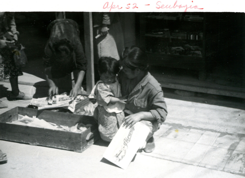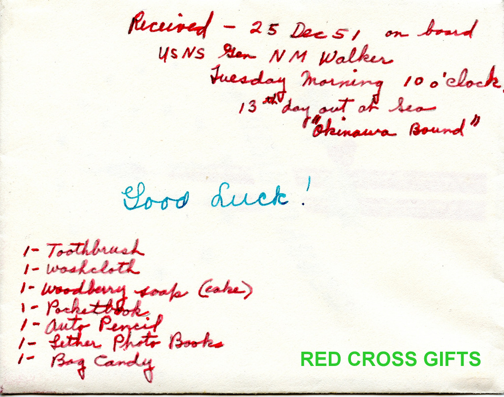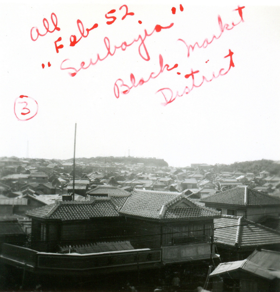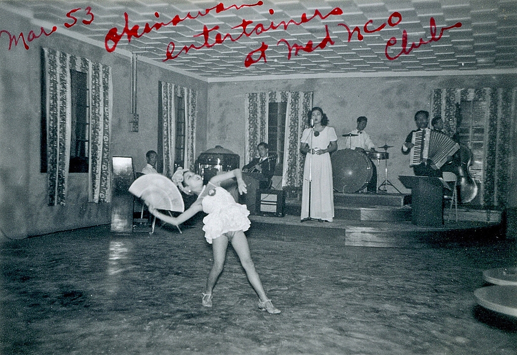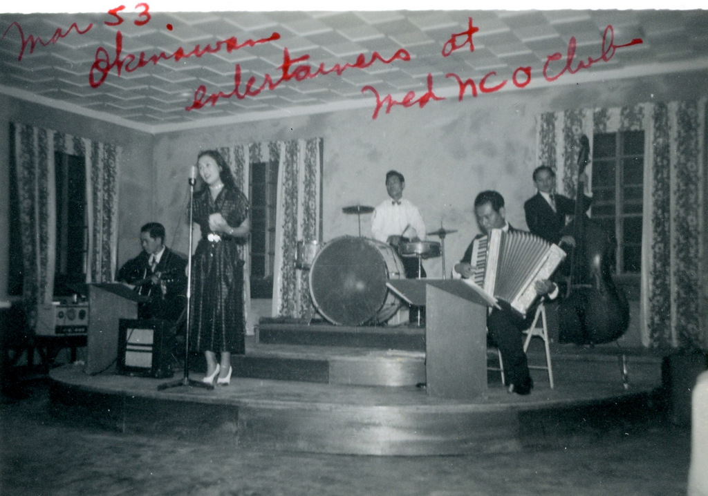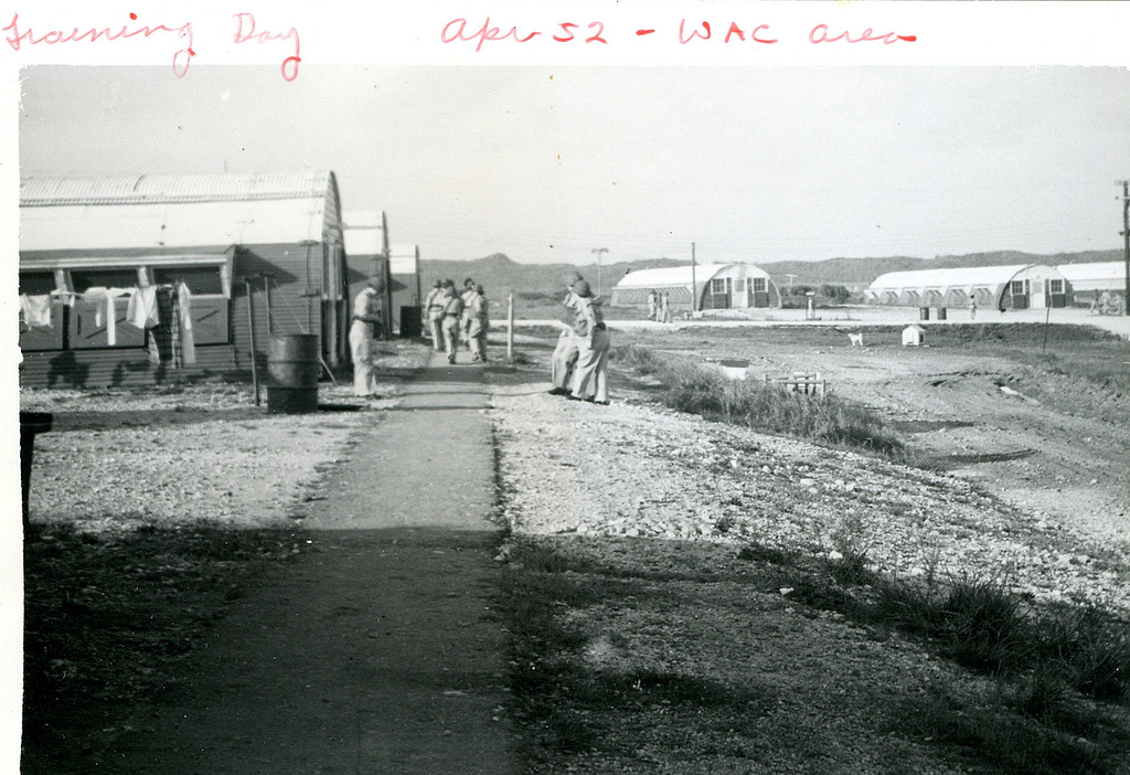 The photo album of Corporal Margaret Whalen, 8117th Army Unit (AU) WAC detachment APO 719 stationed at the Ryukyu Army Hospital, Camp Mercy Okinawa in 1952 during the Korean War. Starting with her trip to Okinawa aboard the USNS General N.M. Walker, including Christmas aboard, menu, gifts from the Red Cross and the ships newspaper. Photos of the Ryukyu Army Hospital at Camp Mercy, along with her PX ration cards, and Okinawan entertainment at the Camp Mercy NCO club. Photos of nearby villages, trips to Naha, she spells the pottery district of Tsuboya the way it sounded to her in English as Seuboyia. Photos of Heiwa Dori black market street. Even a photo of the old Ernie Pyle movie theater in Tsuboya. A visit to Nakagusuku castle, including a horse racing track at the castle. An interesting slice of WAC life on Okinawa during the Korean War.