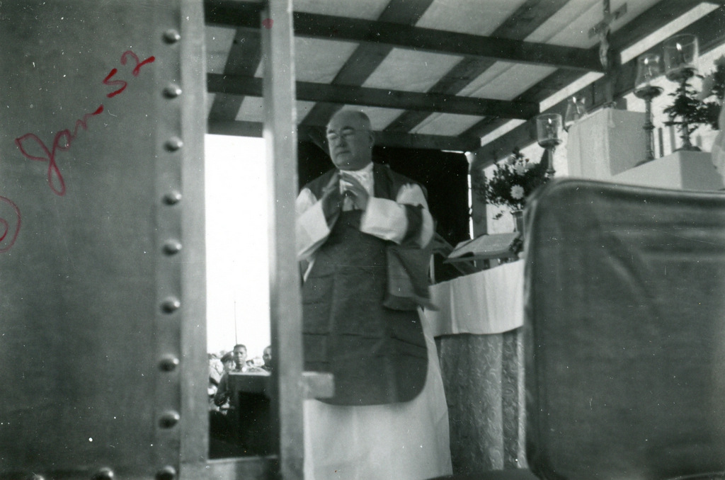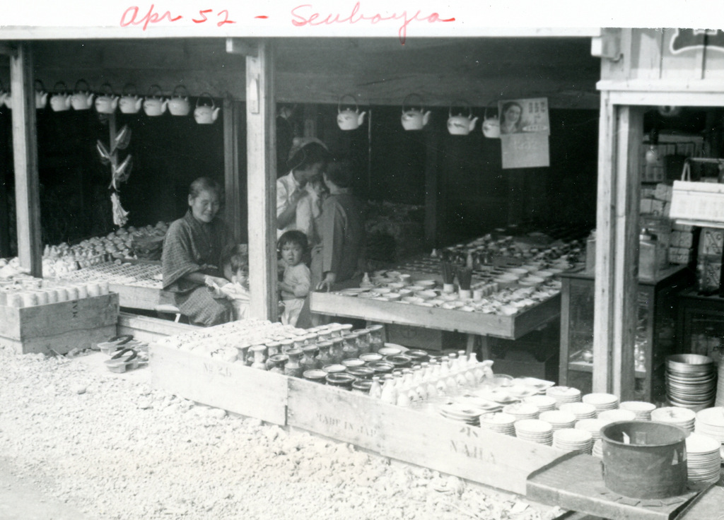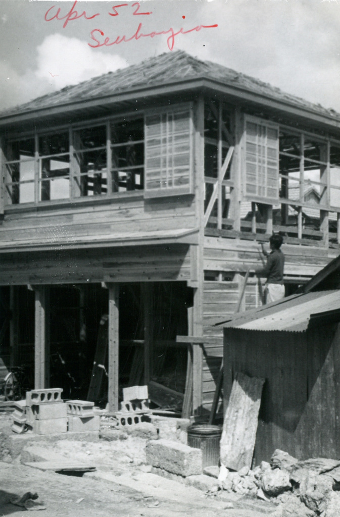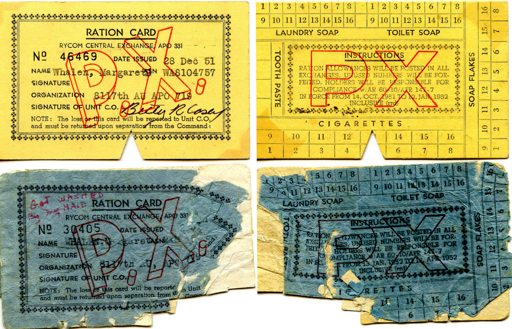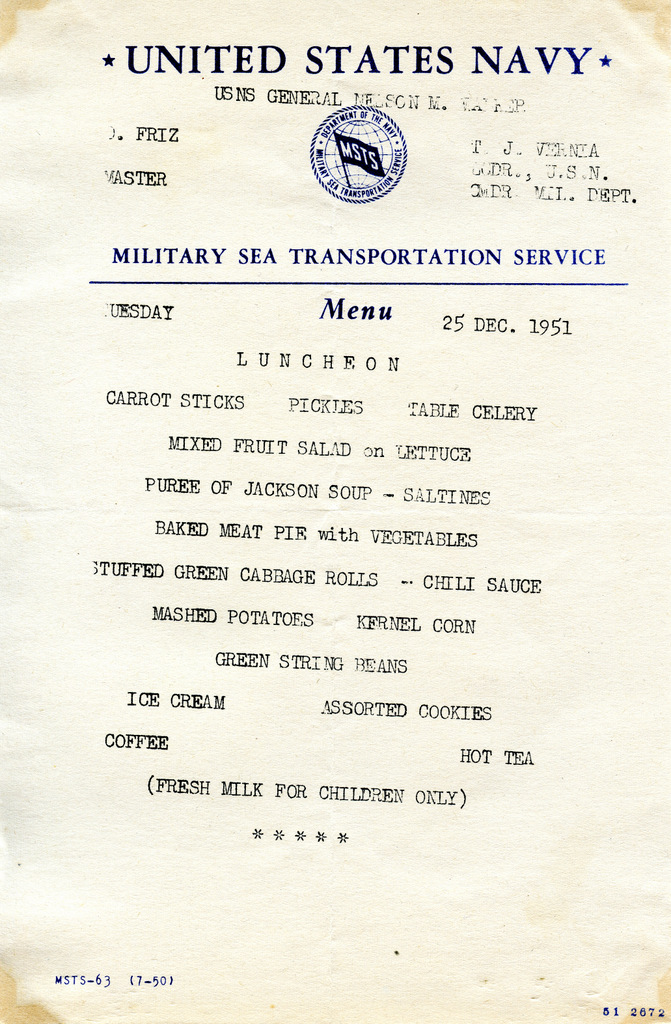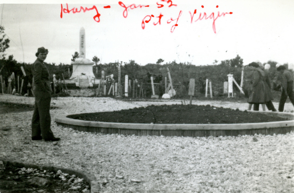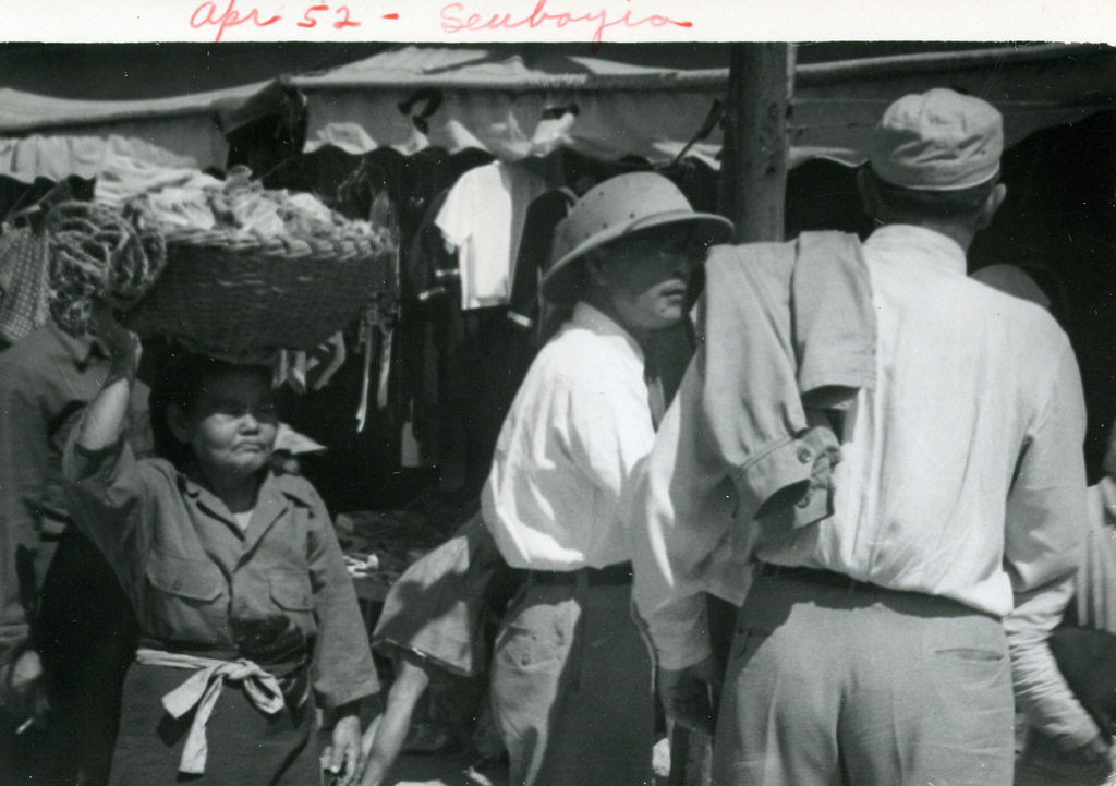 The photo album of Corporal Margaret Whalen, 8117th Army Unit (AU) WAC detachment APO 719 stationed at the Ryukyu Army Hospital, Camp Mercy Okinawa in 1952 during the Korean War. Starting with her trip to Okinawa aboard the USNS General N.M. Walker, including Christmas aboard, menu, gifts from the Red Cross and the ships newspaper. Photos of the Ryukyu Army Hospital at Camp Mercy, along with her PX ration cards, and Okinawan entertainment at the Camp Mercy NCO club. Photos of nearby villages, trips to Naha, she spells the pottery district of Tsuboya the way it sounded to her in English as Seuboyia. Photos of Heiwa Dori black market street. Even a photo of the old Ernie Pyle movie theater in Tsuboya. A visit to Nakagusuku castle, including a horse racing track at the castle. An interesting slice of WAC life on Okinawa during the Korean War.