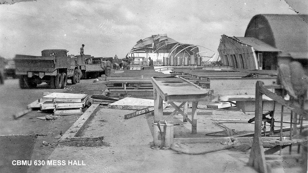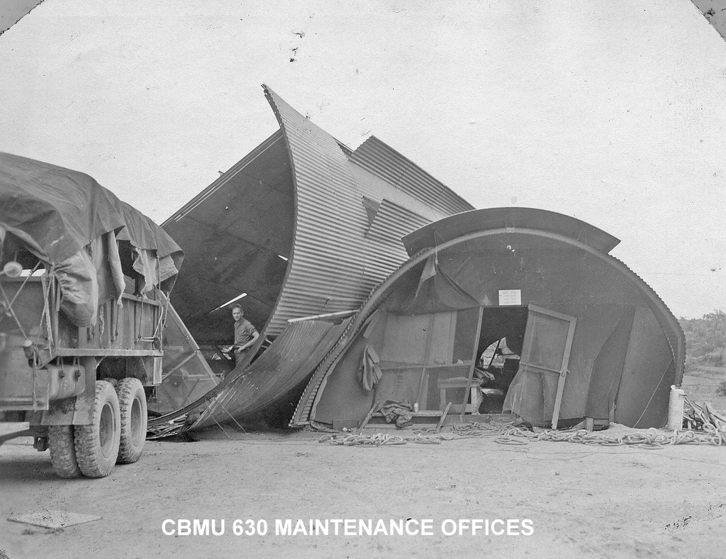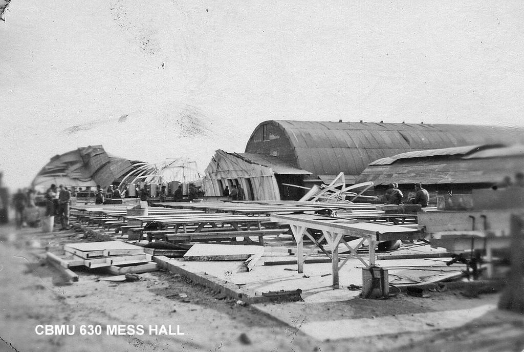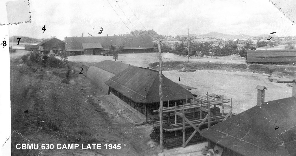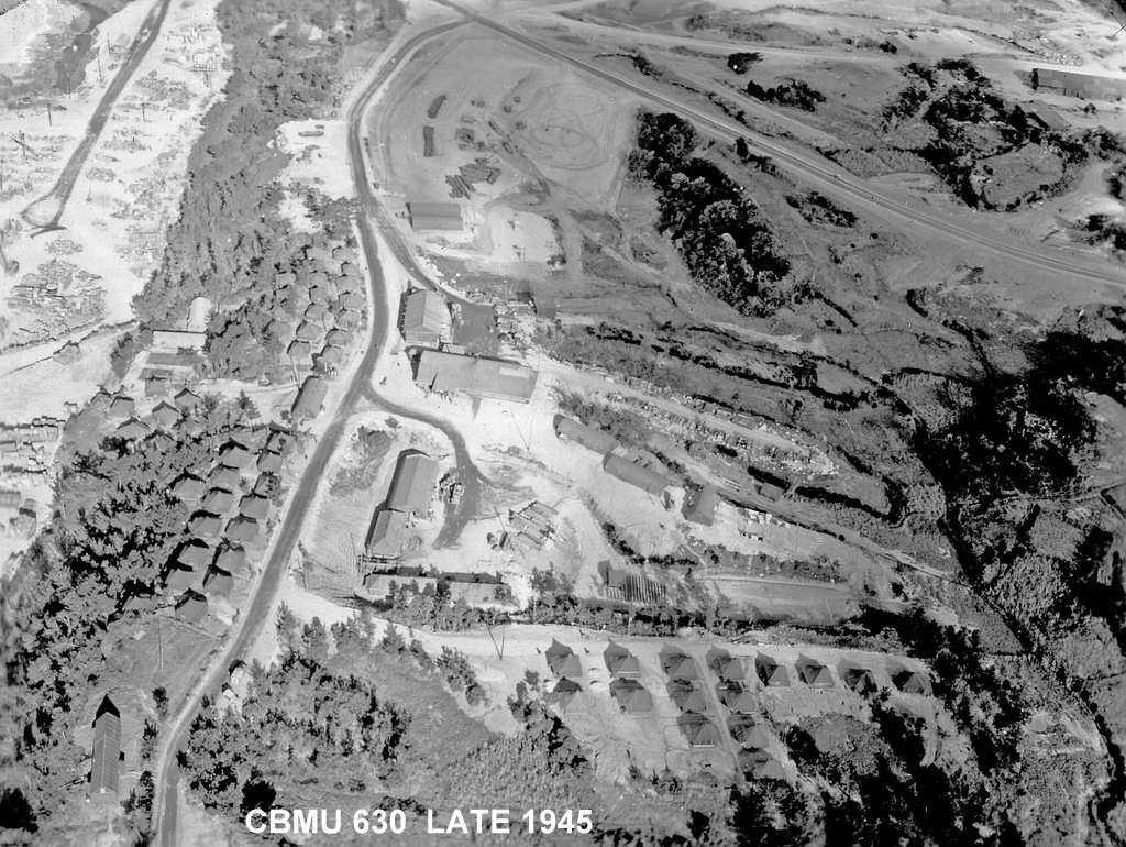 Navy Construction Maintenance Unit 630, a Seabee unit that arrived on Okinawa in June 1945, part of Naval Construction Battalion 24. Photos include other Seabee units such as CBMU 513 and NCB 68.