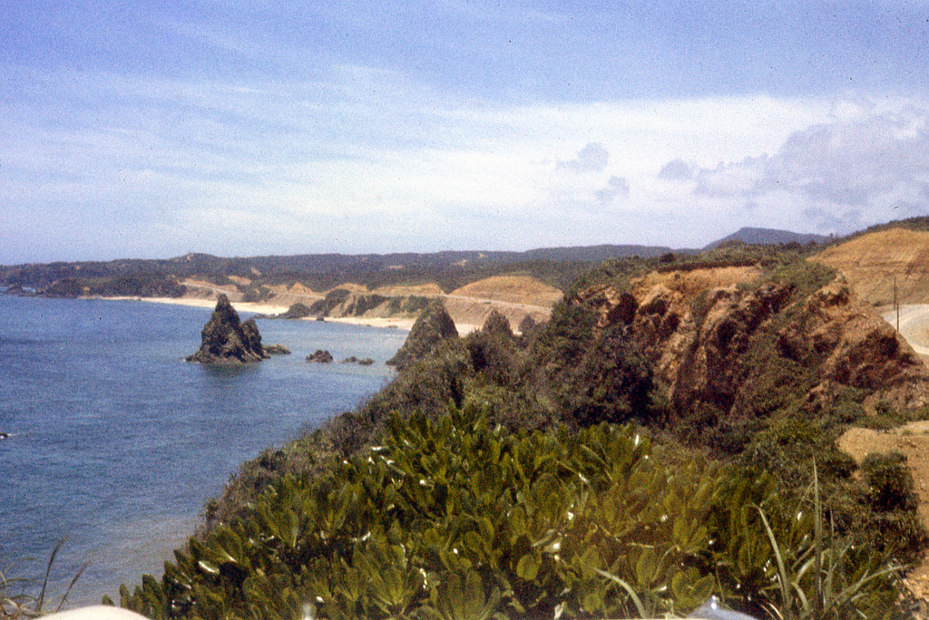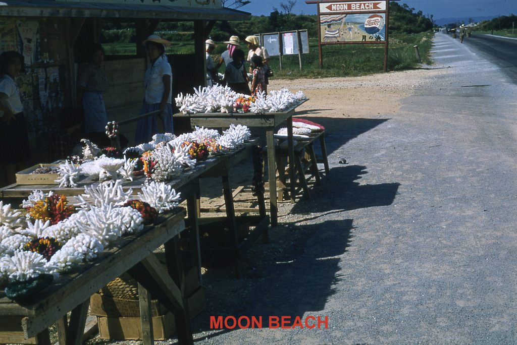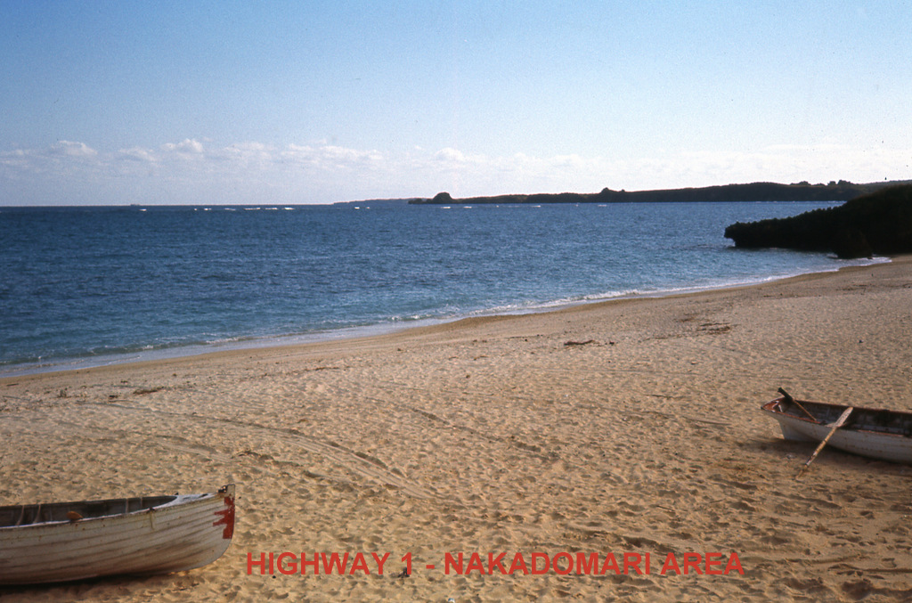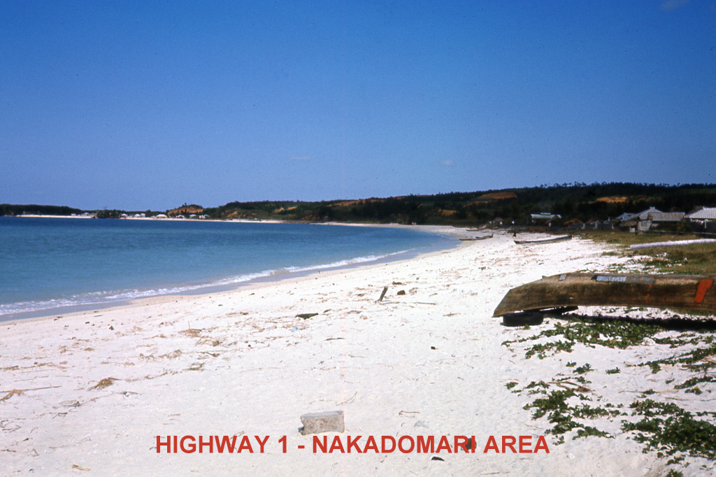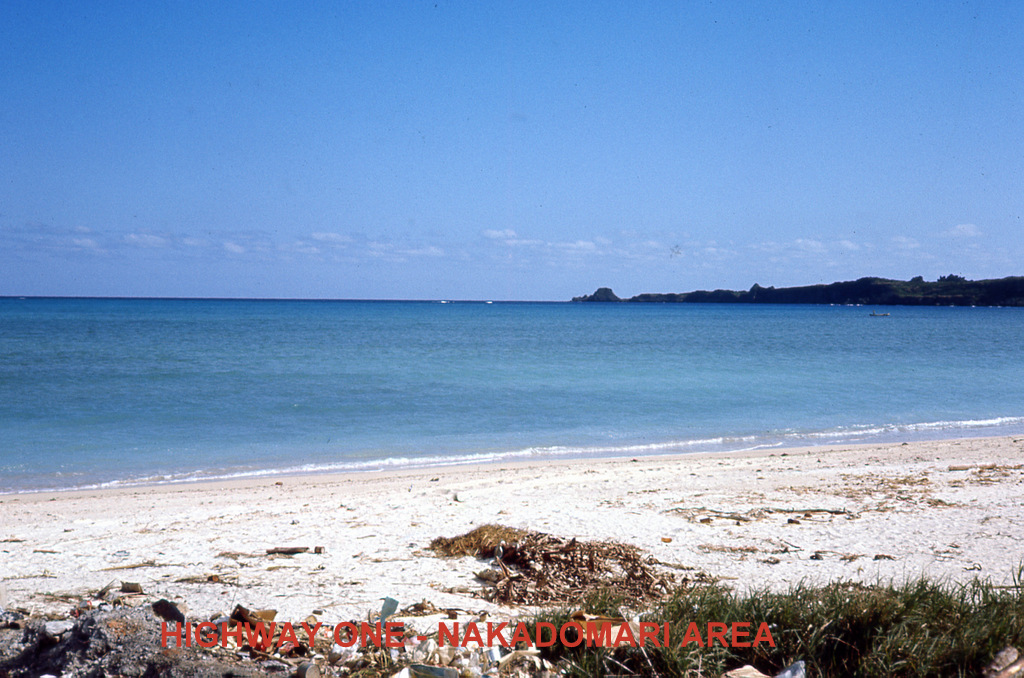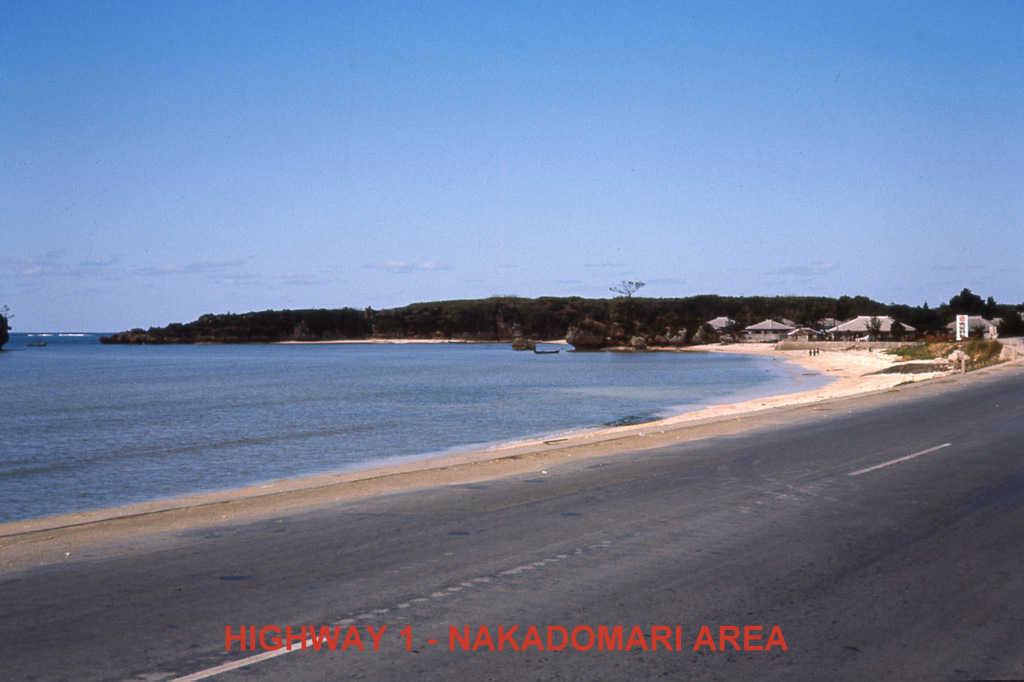 Various scenes along Highway 1 on the west coast of Okinawa including Moon Beach and north to the Motobu area.