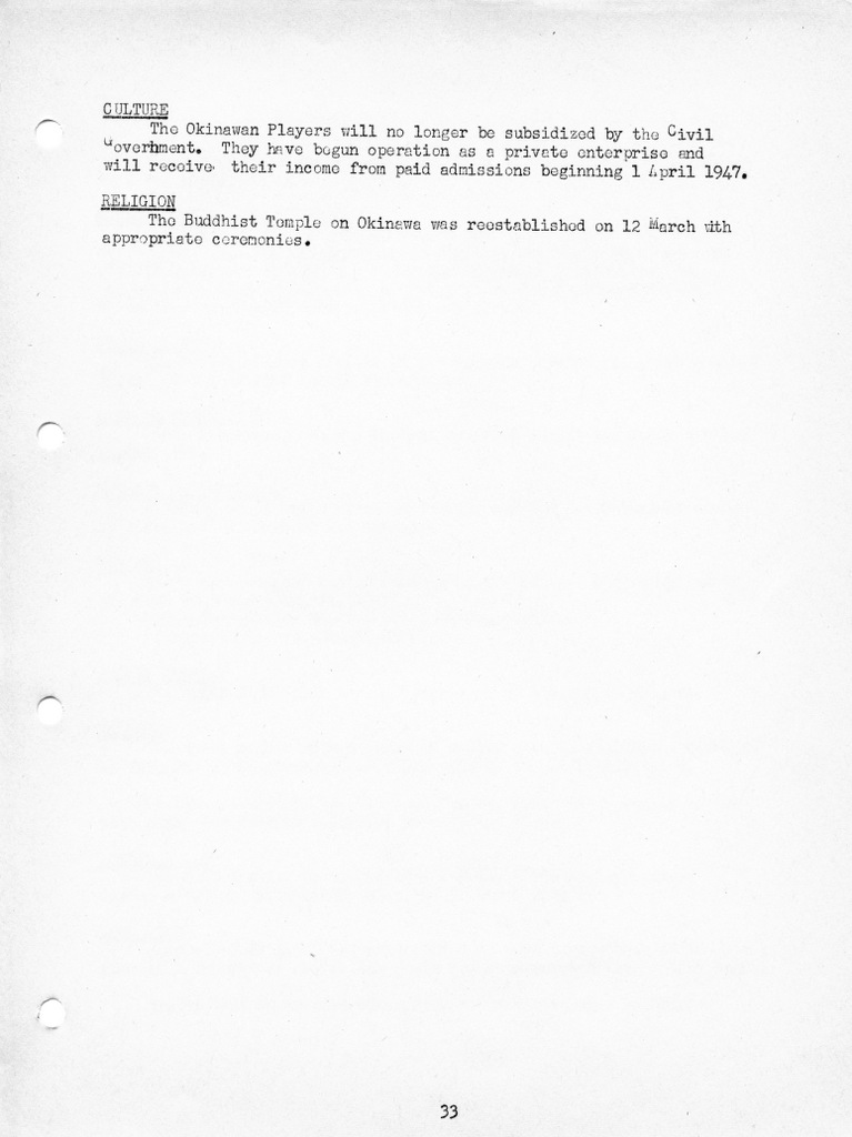 The RYKOM Military government was established to administer to the needs of the Okinawan civilian population that had been devastated during the war. It provided the basis for providing food, shelter, medical care, education and all other necessities to get the population back on its feet after the effects of the war.