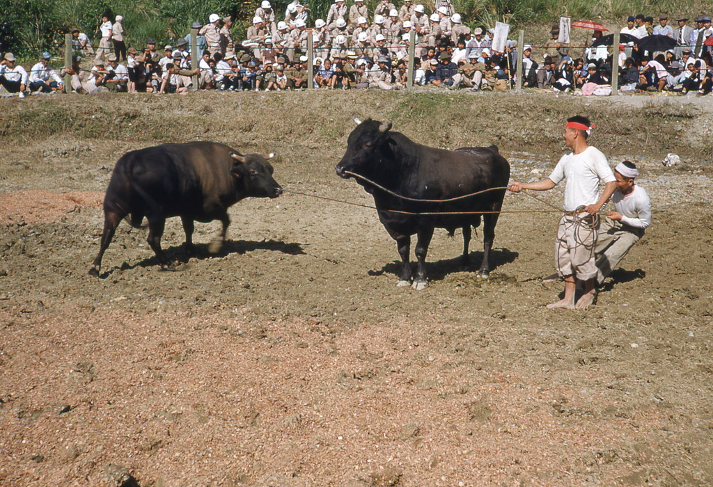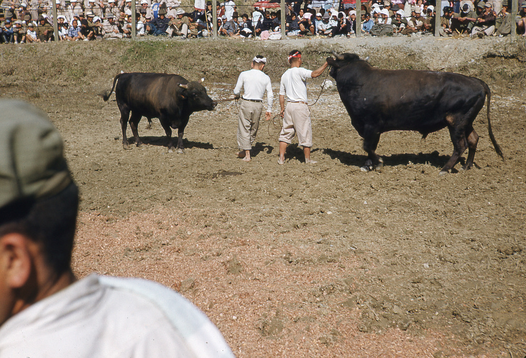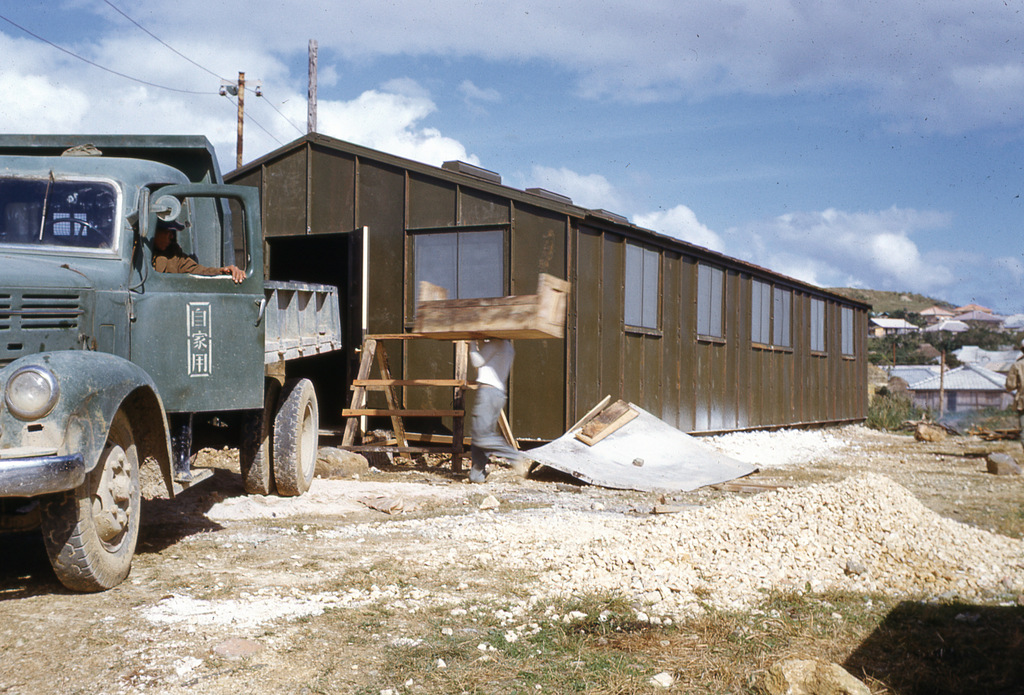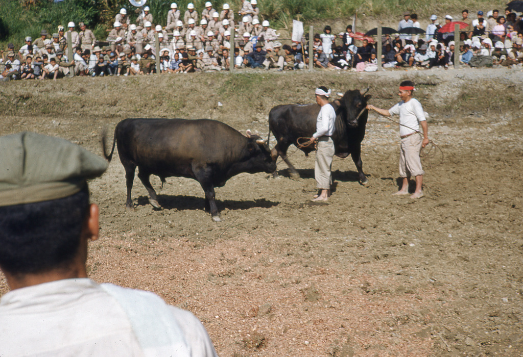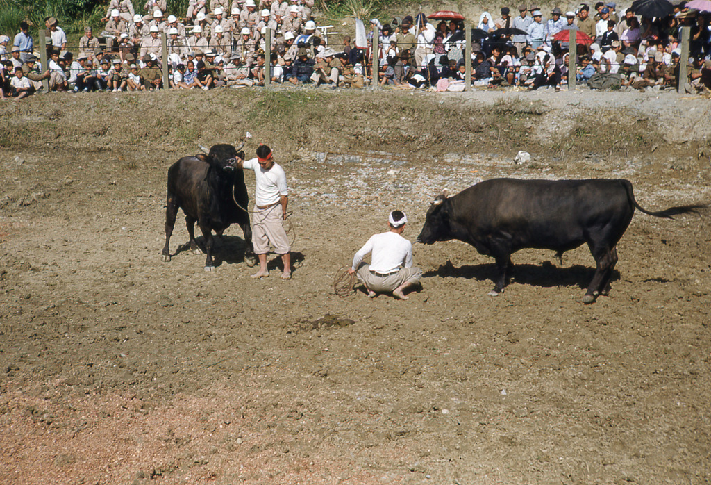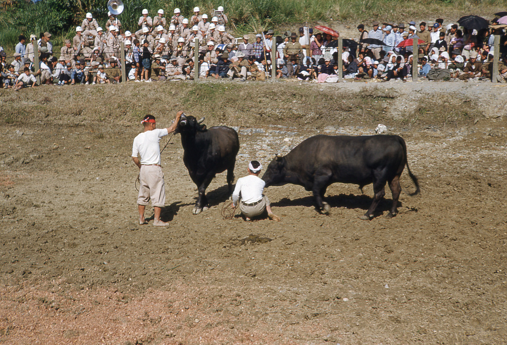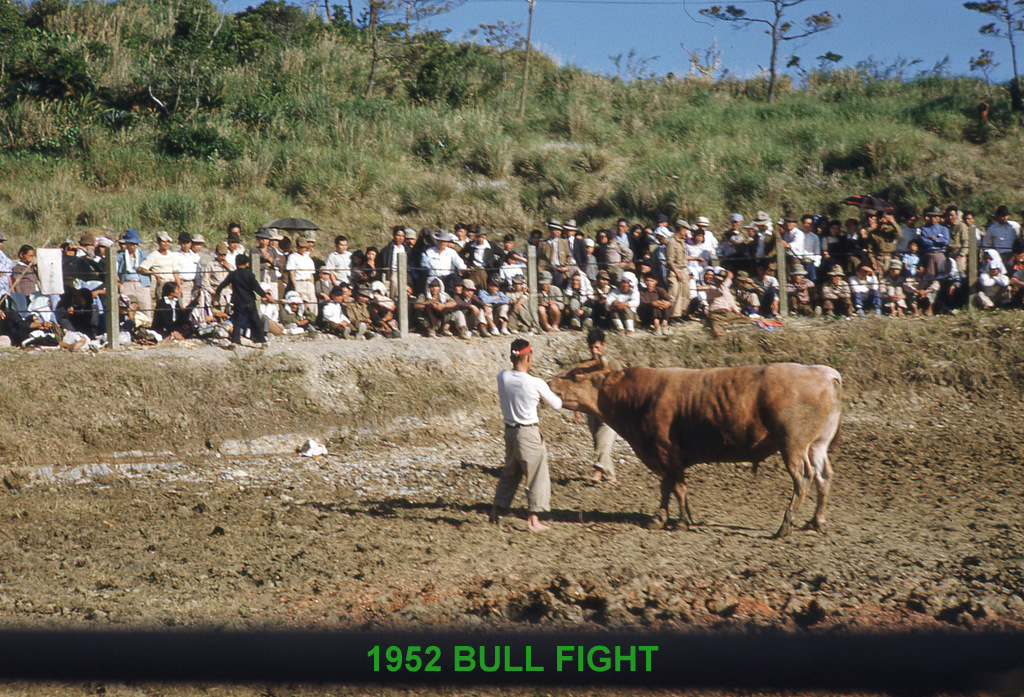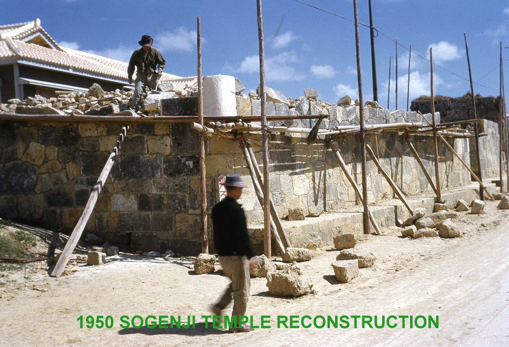 Great early photos of Naha, Camp Kue, Camp Sukiran, Sogenji Temple reconstruction, bullfights, Camp Chinen, and other locations around Okinawa.
