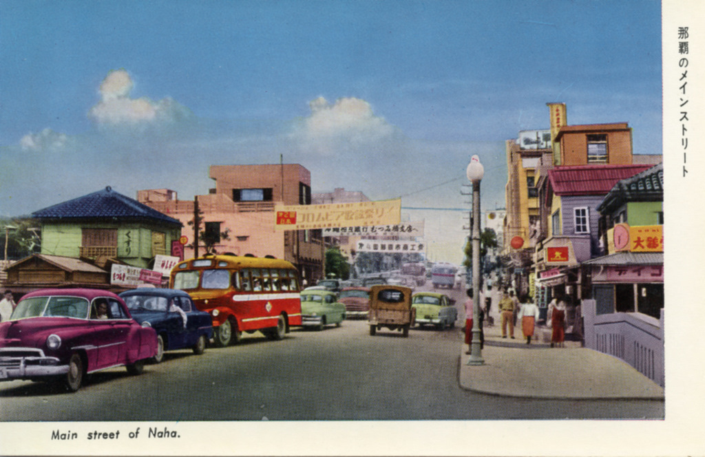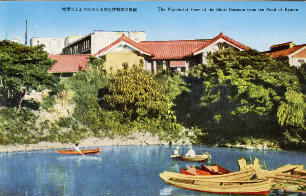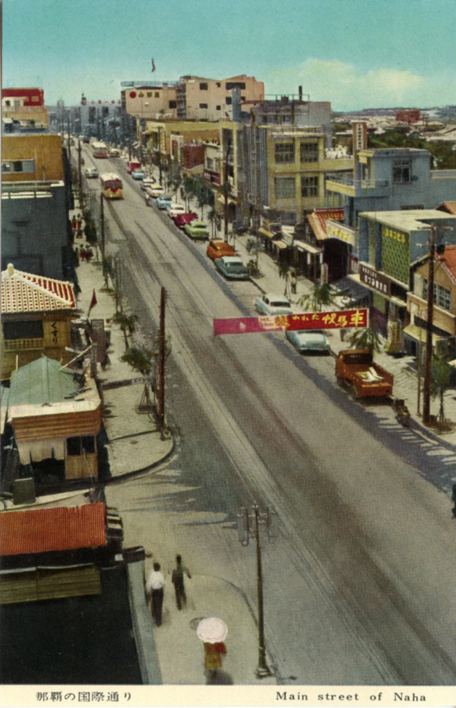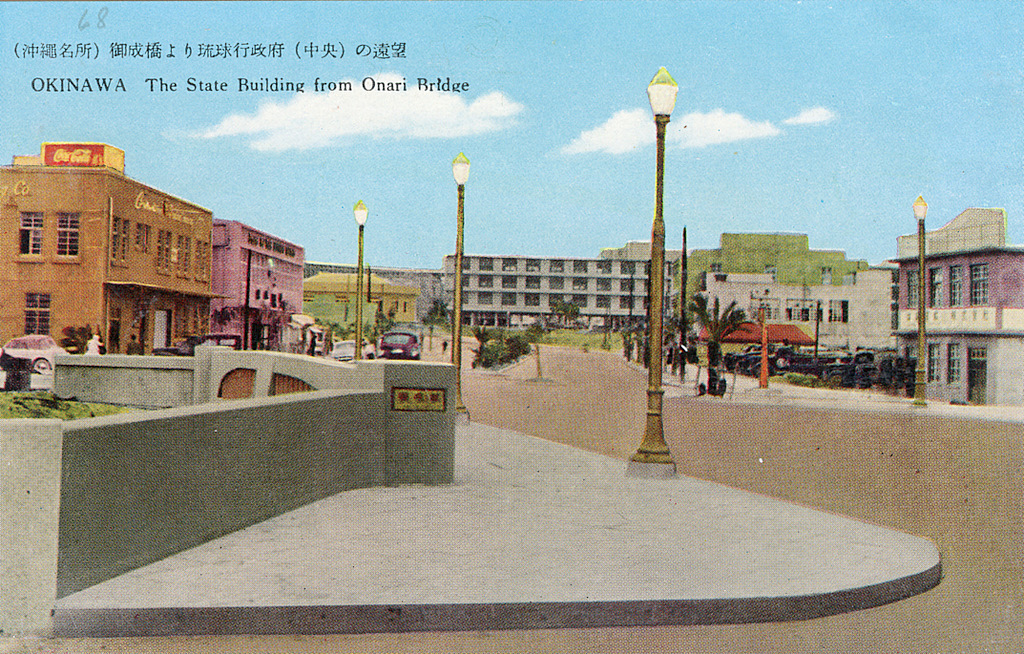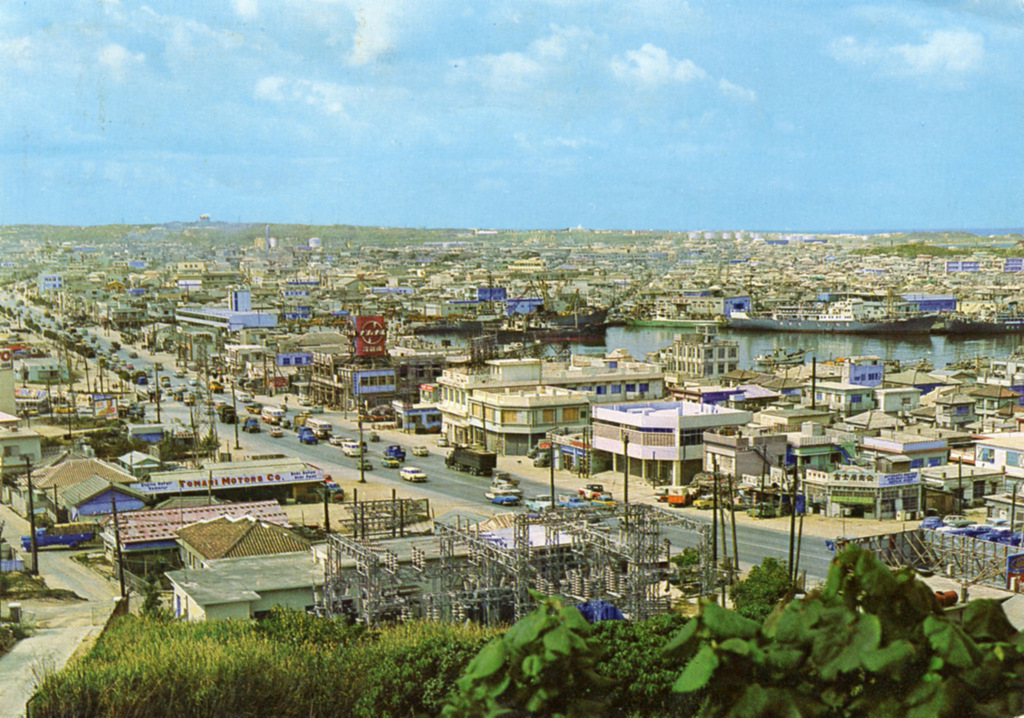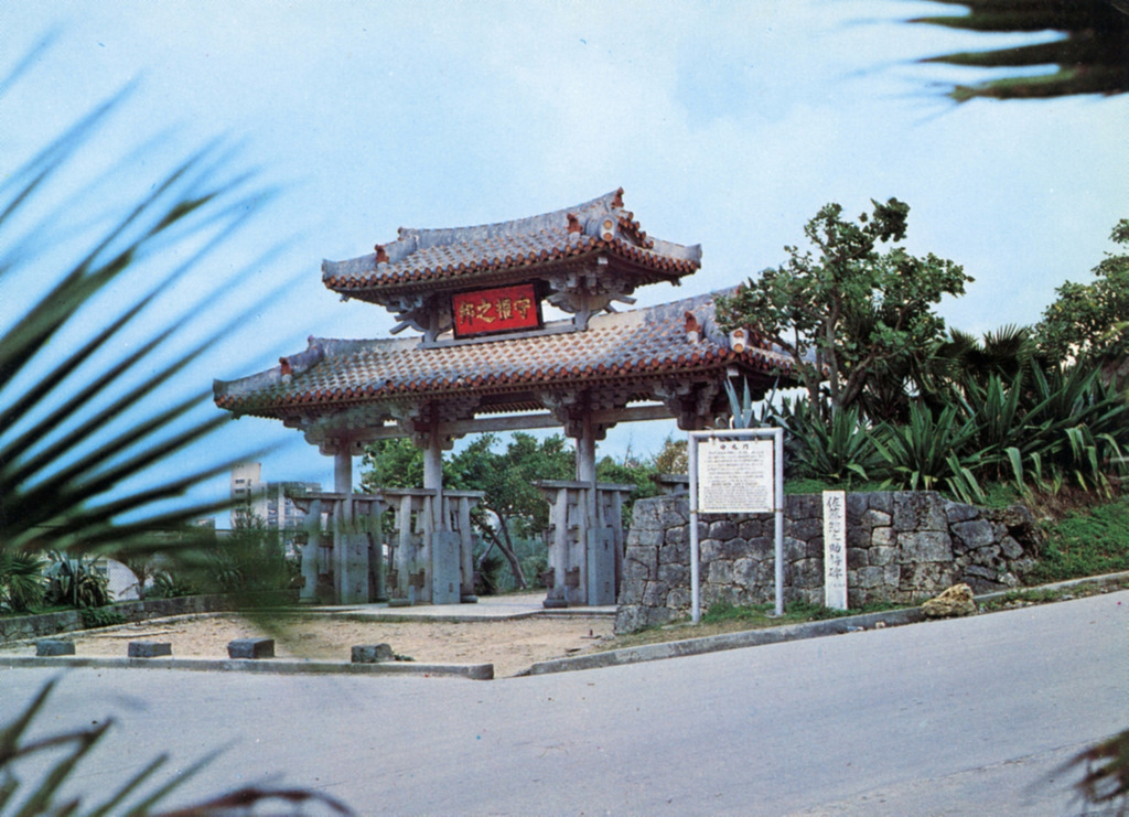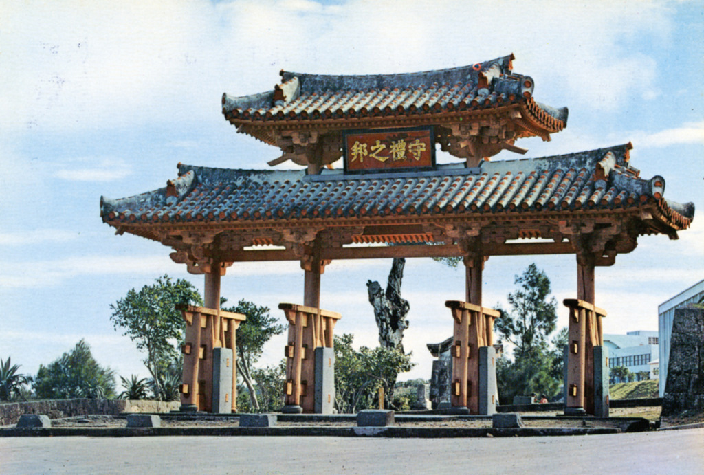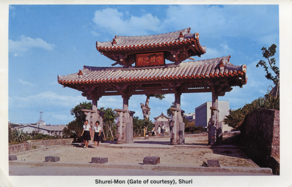 Color postcards from Naha and Shuri (Shurei) showing the changes over the years from Kokusai-Dori, to Shuri-Mon (Gate of Courtesy). Naha harbor to Tomari Port, Shuri museum at Ryutan Lake to the University of the Ryukyus, Butoku-Den to the Ryubo department store.