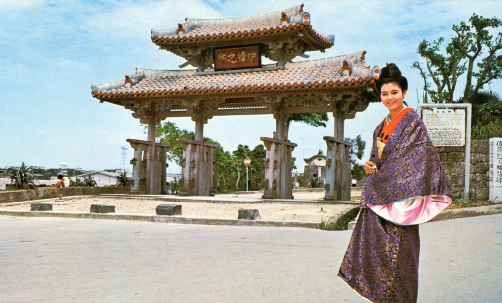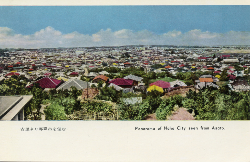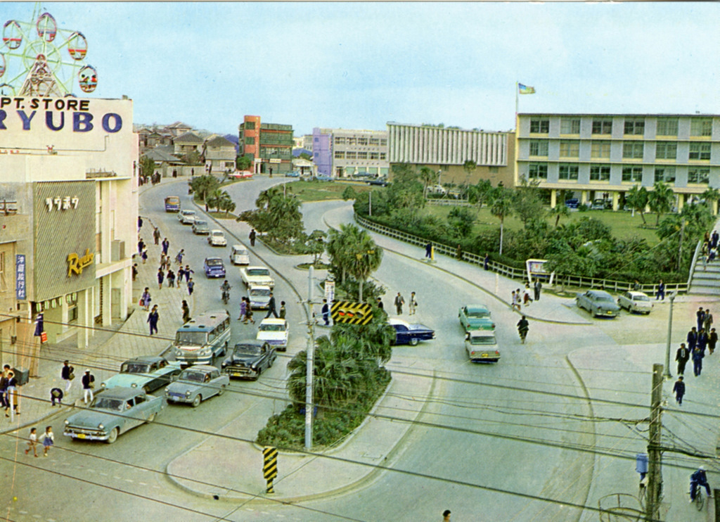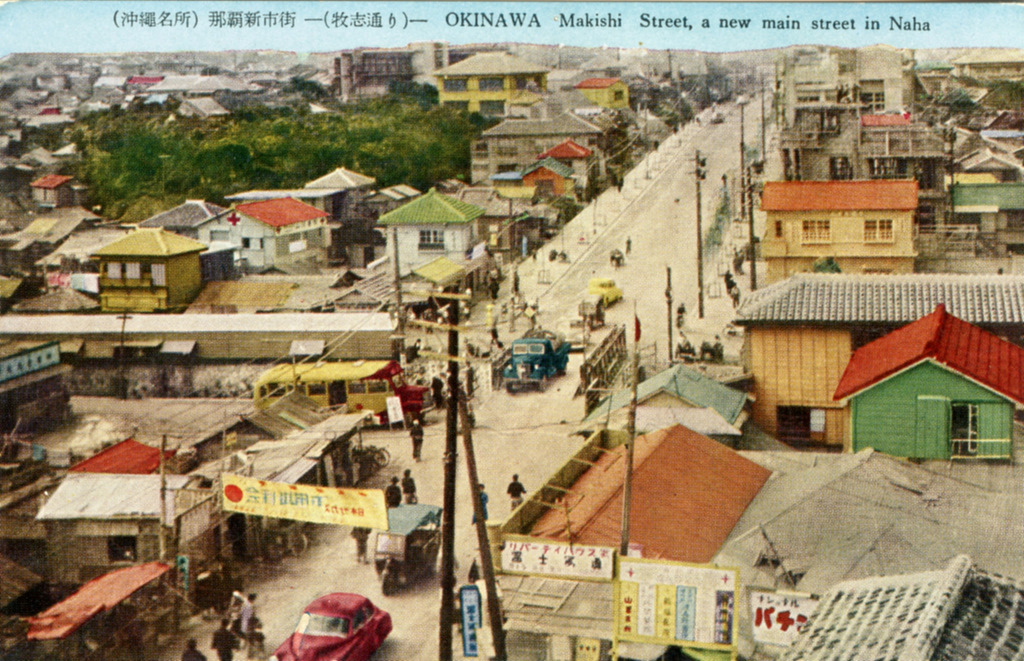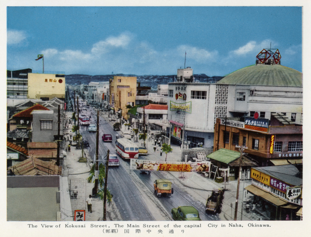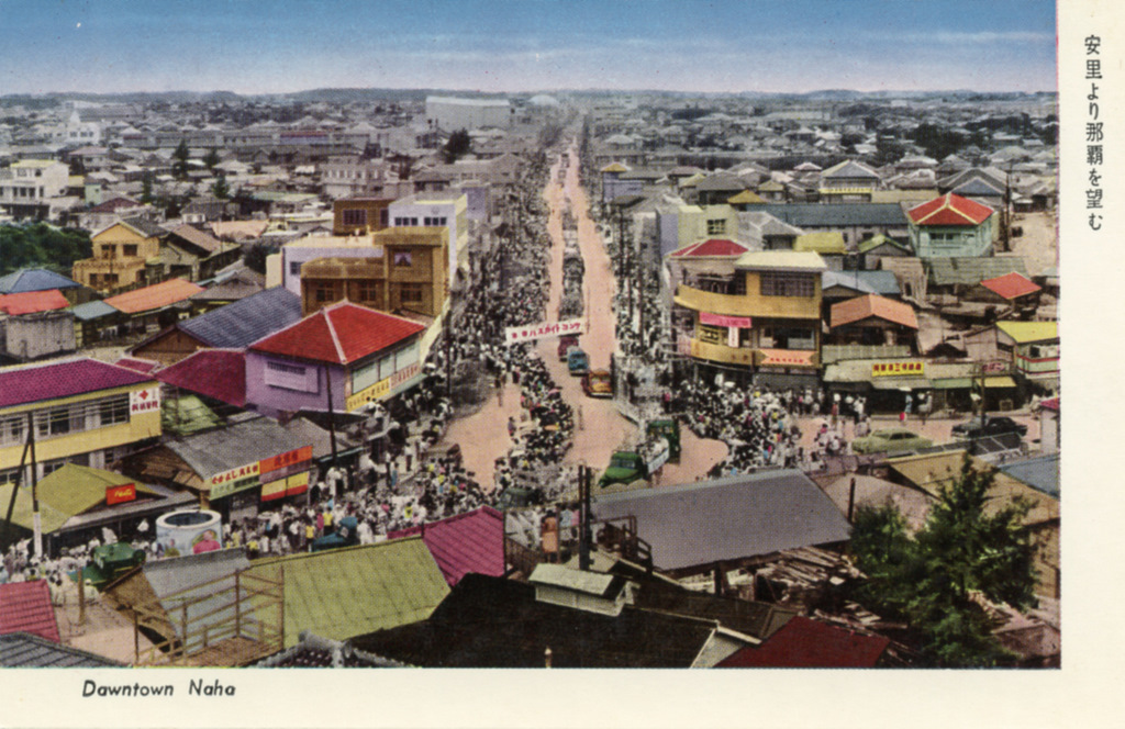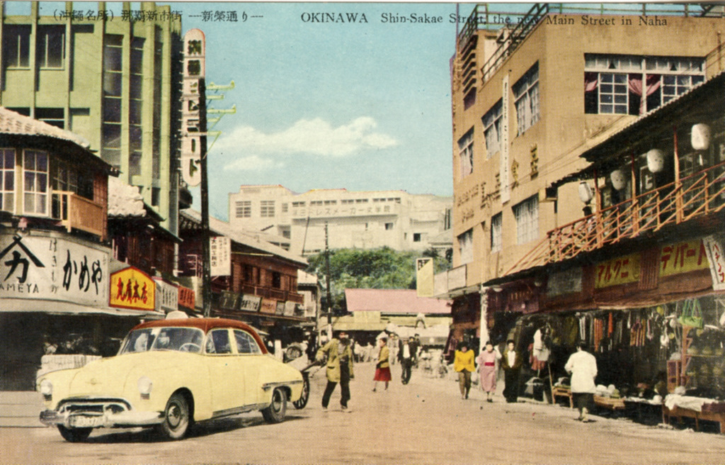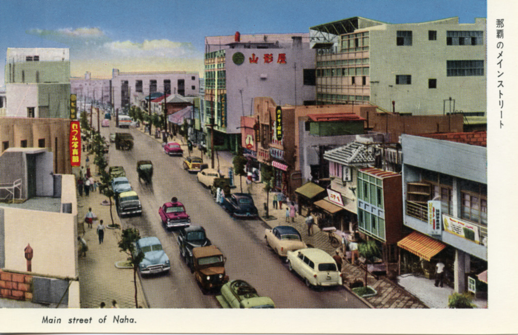 Color postcards from Naha and Shuri (Shurei) showing the changes over the years from Kokusai-Dori, to Shuri-Mon (Gate of Courtesy). Naha harbor to Tomari Port, Shuri museum at Ryutan Lake to the University of the Ryukyus, Butoku-Den to the Ryubo department store.