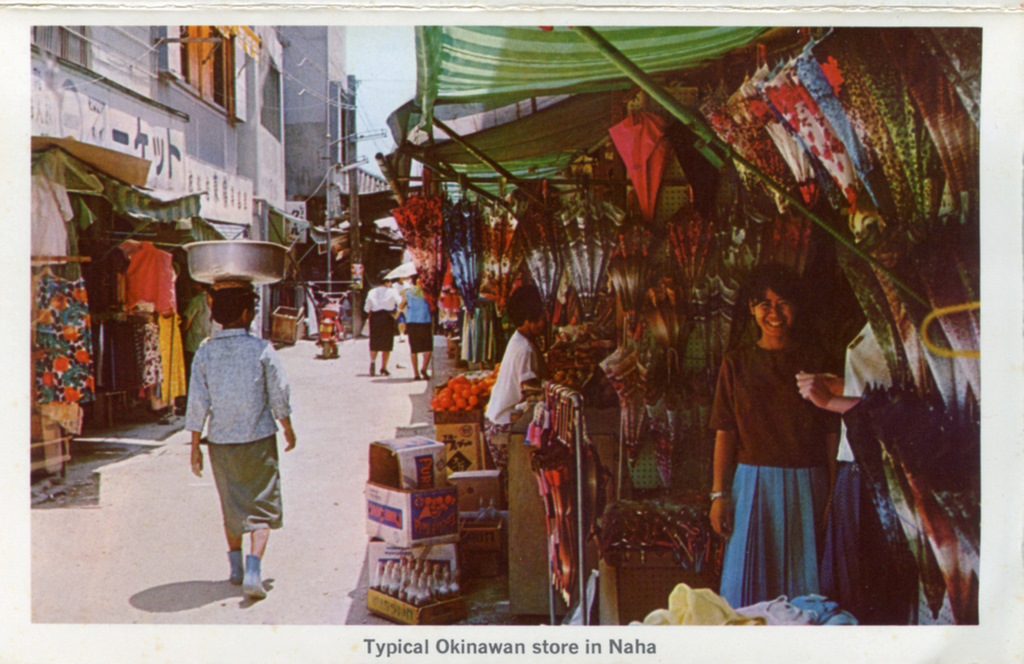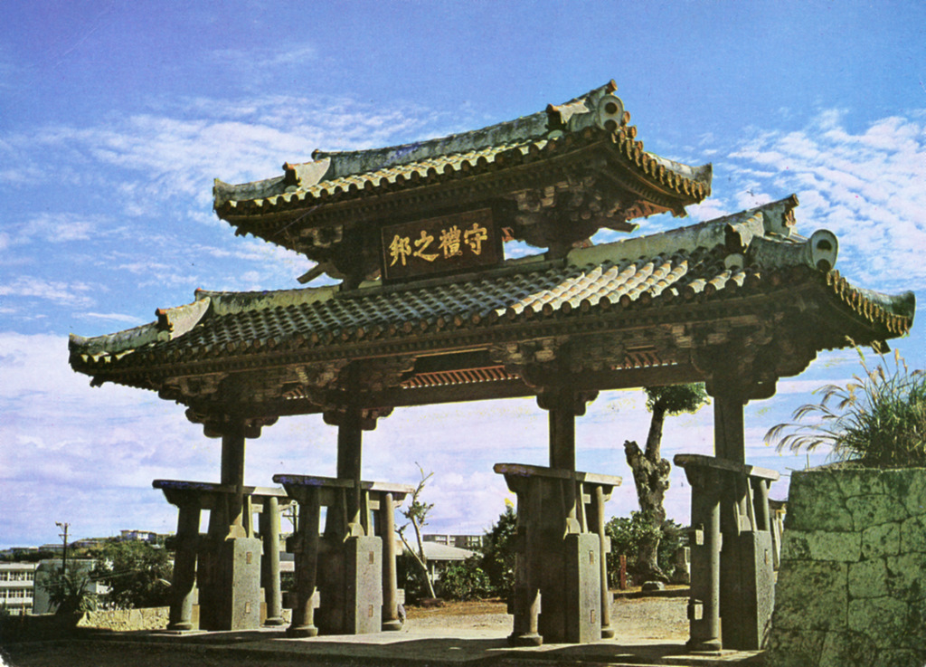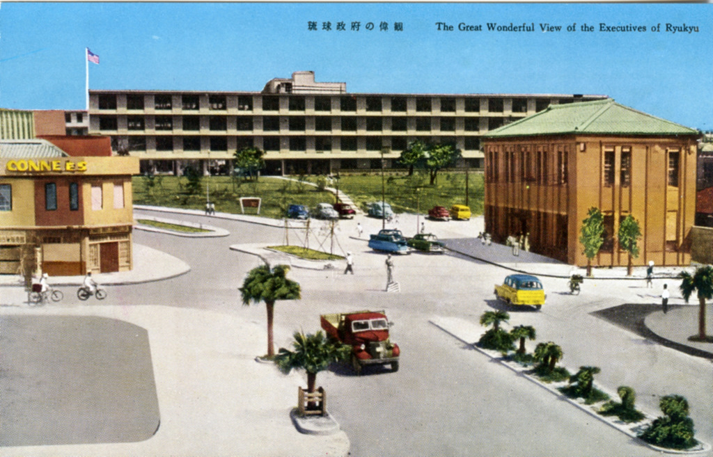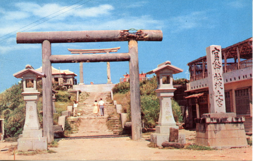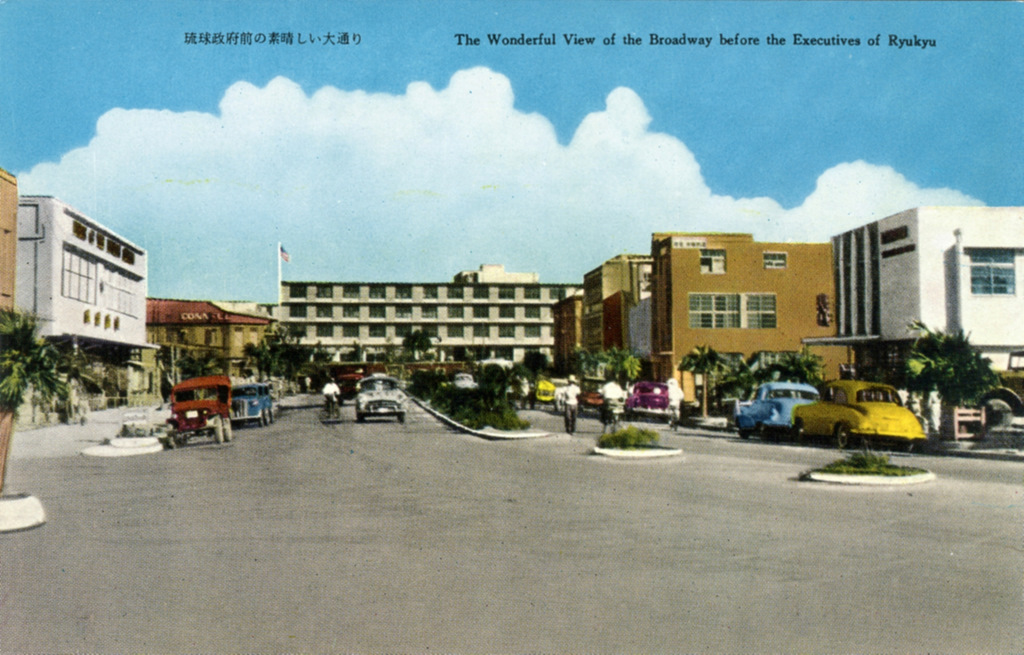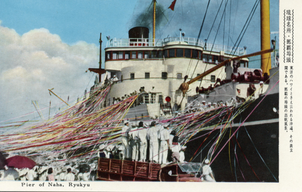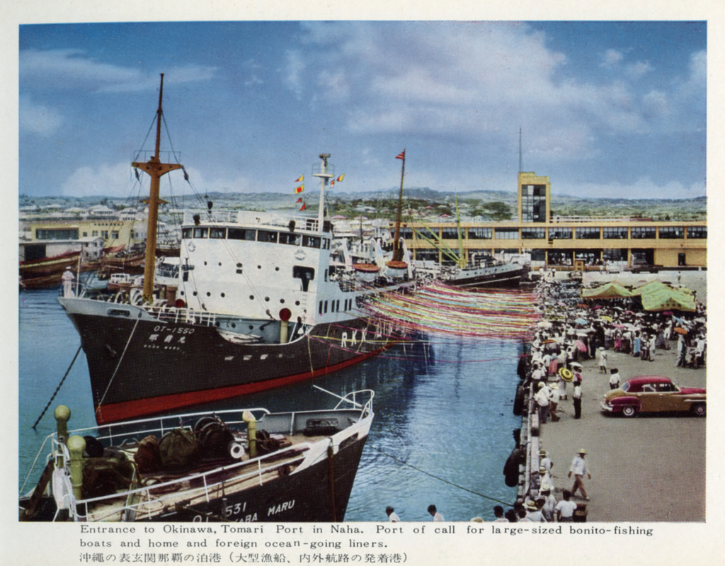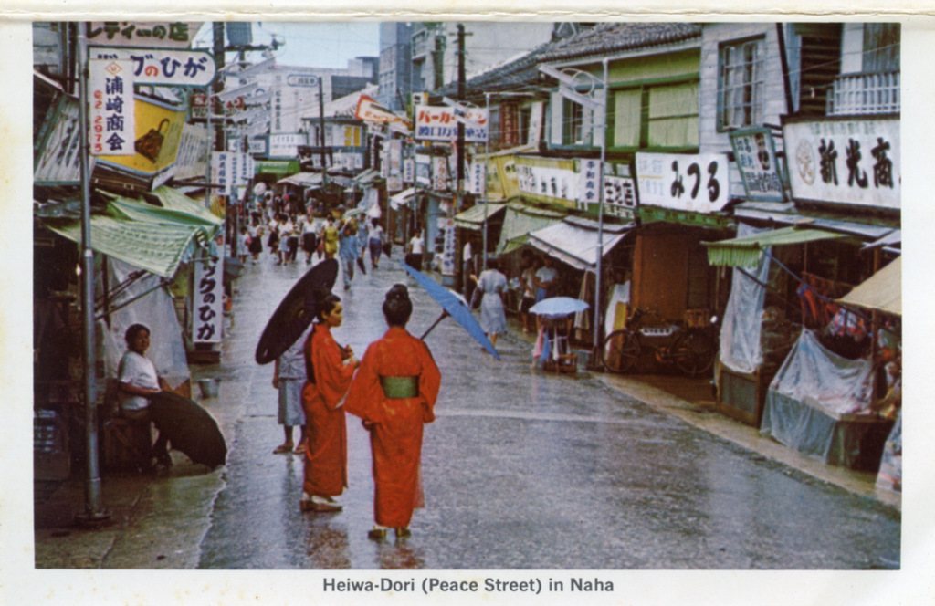 Color postcards from Naha and Shuri (Shurei) showing the changes over the years from Kokusai-Dori, to Shuri-Mon (Gate of Courtesy). Naha harbor to Tomari Port, Shuri museum at Ryutan Lake to the University of the Ryukyus, Butoku-Den to the Ryubo department store.